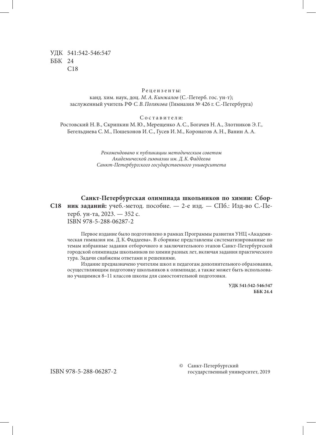 Санкт-Петербургская олимпиада школьников по химии: Сборник задач