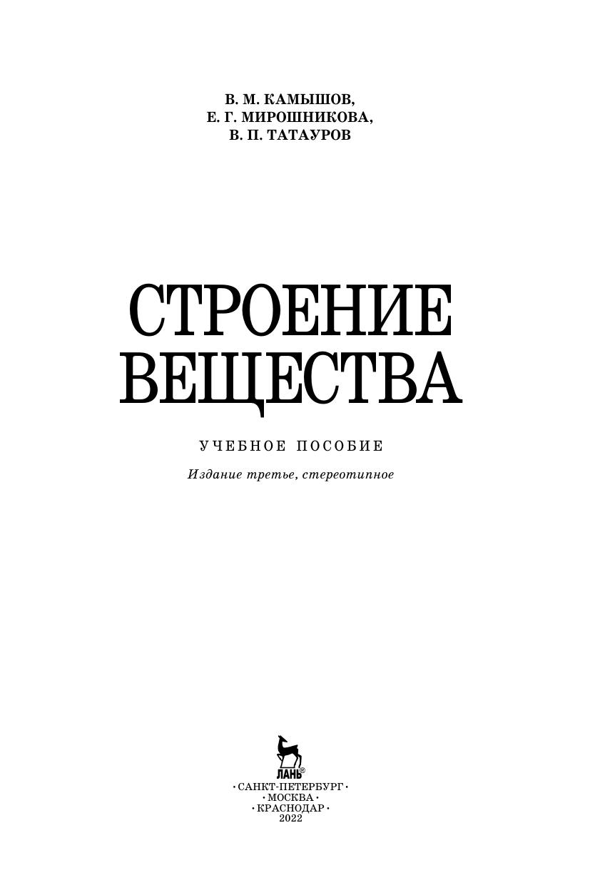Настоящее учебное пособие представляет последовательное и многостороннее изложение одной из важнейших составляющих химических наук — раздела о строении вещества. На основе квантово-механического подхода рассматриваются вопросы строения вещества — от микроскопических состояний (атомы, молекулы) до макроскопического (газы и конденсированные фазы). Строение атомов изложено на уровне электронных оболочек и не касается вопросов строения атомного ядра. Учебное пособие предназначено для студентов высших учебных заведений, обучающихся по направлениям «Химия», «Химическая технология». Может быть полезно для бакалавров, обучающихся по нехимическим направлениям подготовки.