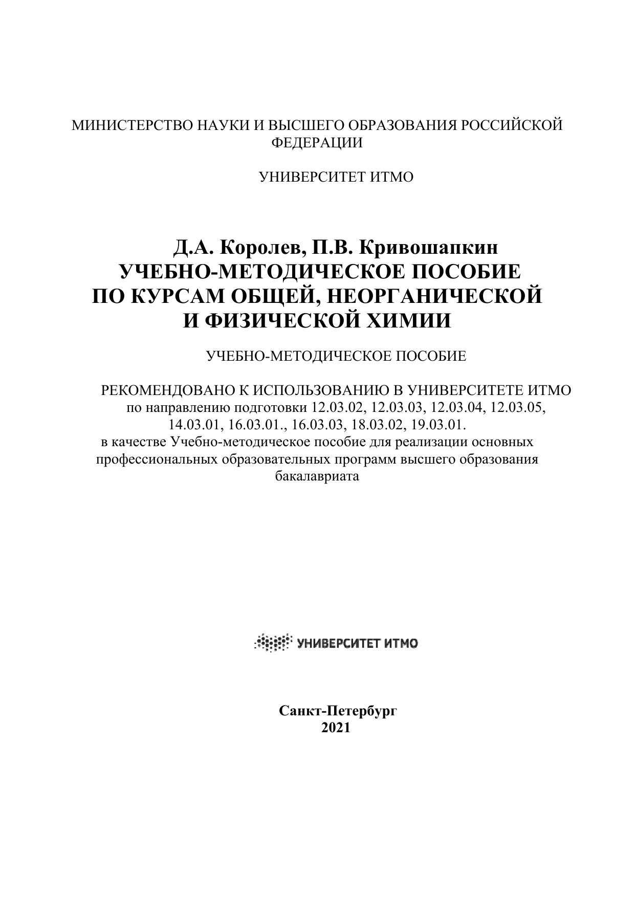 Учебно-методическое пособие по курсам общей, неорганической и физической химии