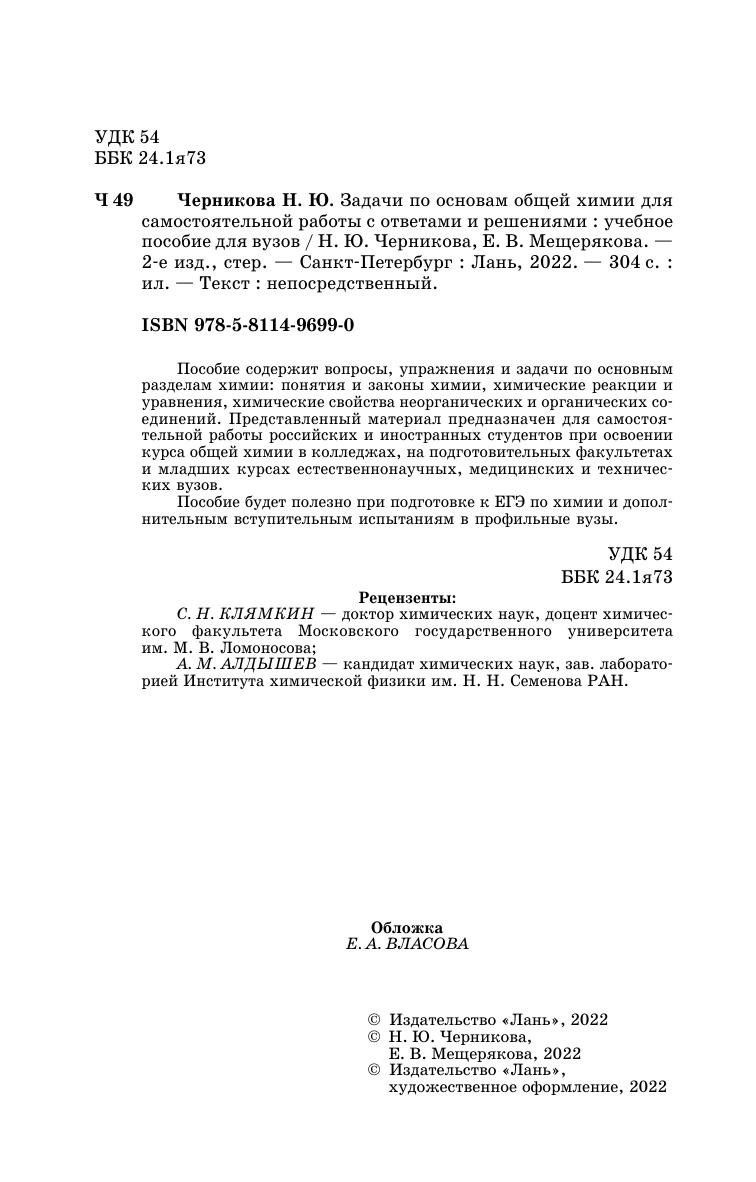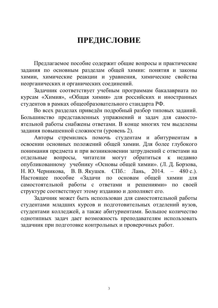 Пособие содержит вопросы, упражнения и задачи по основным разделам химии: понятия и законы химии, химические реакции и уравнения, химические свойства неорганических и органических соединений. Представленный материал предназначен для самостоятельной работы российских и иностранных студентов при освоении курса общей химии в колледжах, на подготовительных факультетах и младших курсах естественнонаучных, медицинских и технических вузов. Пособие будет полезно при подготовке к ЕГЭ по химии и дополнительным вступительным испытаниям в профильные вузы.