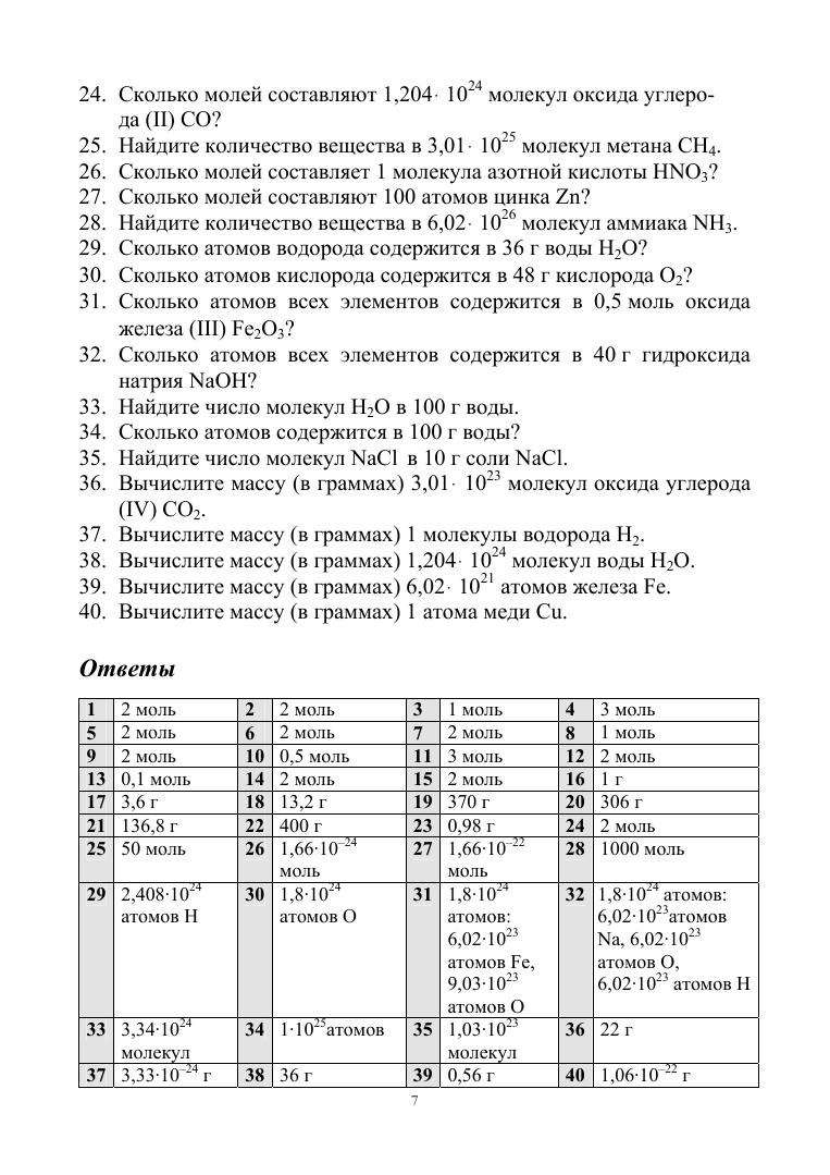 Задачи по основам общей химии для самостоятельной работы с ответами и решениями