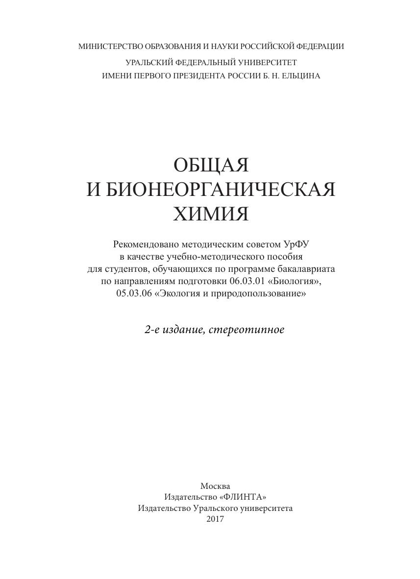 Общая и бионеорганическая химия