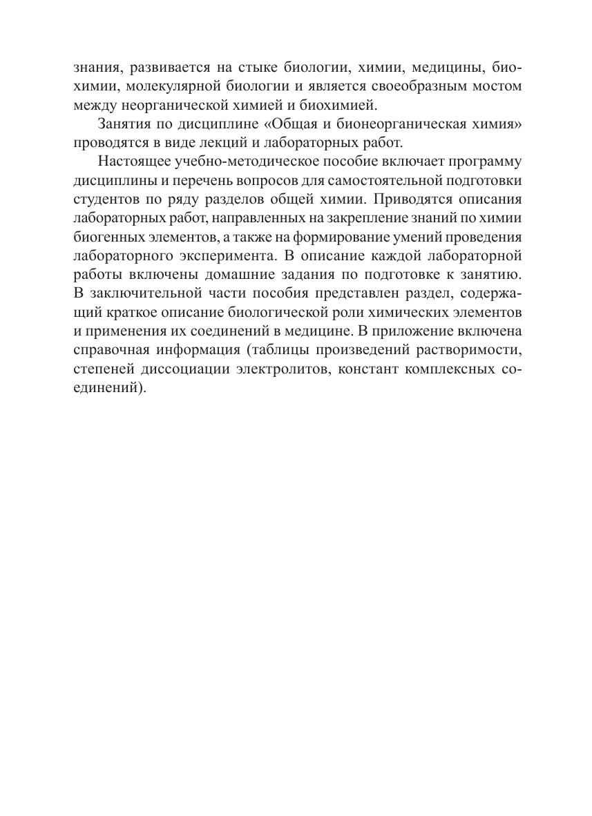 В практической части учебно-методического пособия приведены описания лабораторных работ, рекомендации по оформлению отчетов к ним. В теоретической части дано краткое описание биологической роли химических элементов и применения их соединений в медицине. Адресовано студентам бакалавриата, осваивающим дисциплину «общая и бионеорганическая химия», которая является частью образовательного модуля «Физико-химические основы жизни».