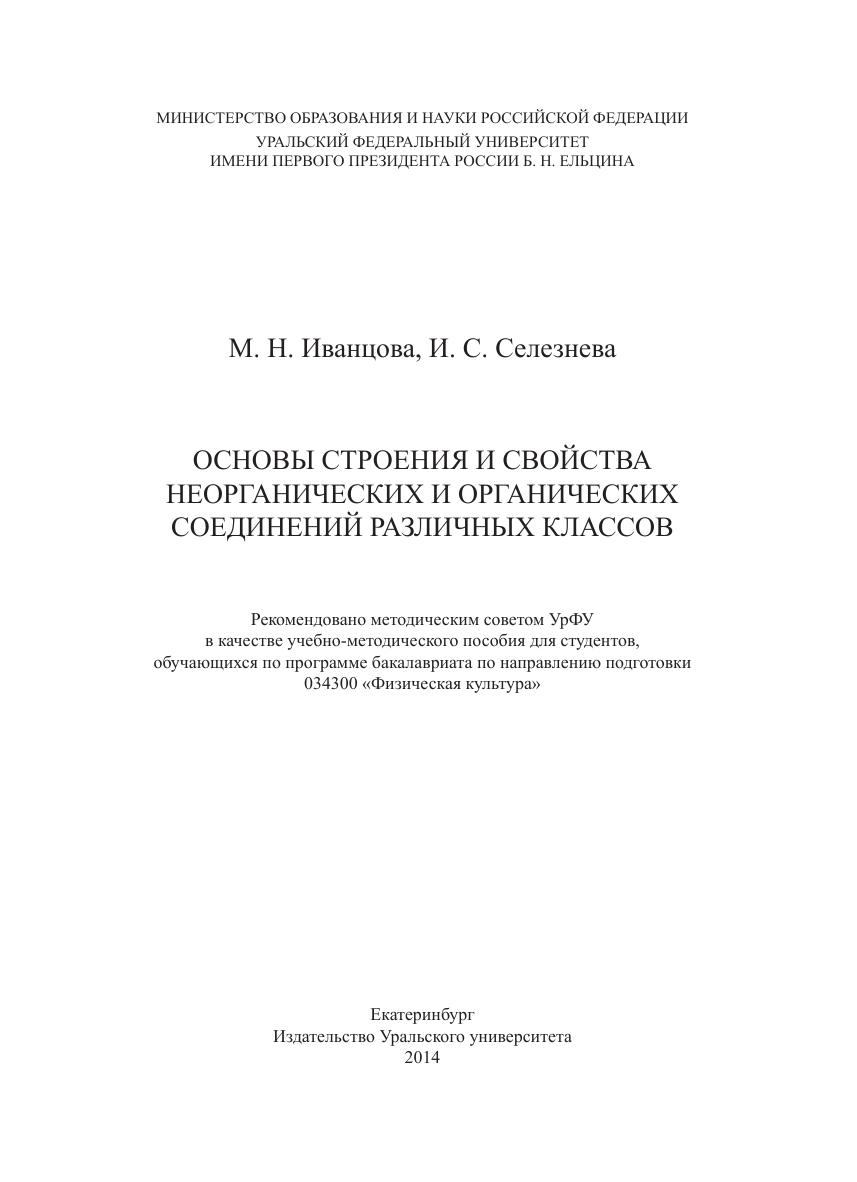 Основы строения и свойства неорганических и органических соединений различных классов: учебно-методическое пособие