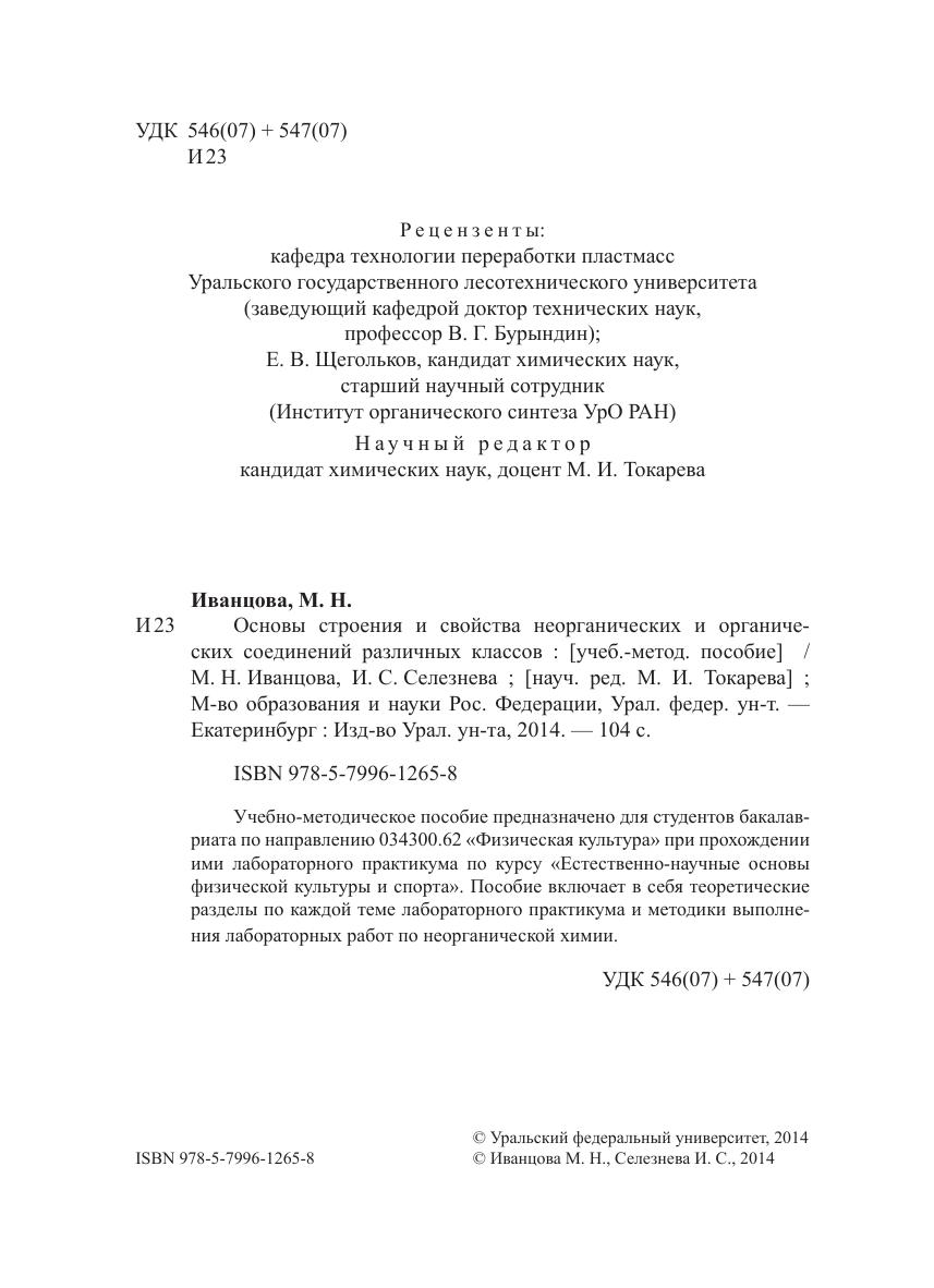 Учебно-методическое пособие предназначено для студентов бакалавриата по направлению 034300.62 «Физическая культура» при прохождении ими лабораторного практикума по курсу «Естественно-научные основы физической культуры и спорта». Пособие включает в себя теоретические разделы по каждой теме лабораторного практикума и методики выполнения лабораторных работ по неорганической химии.