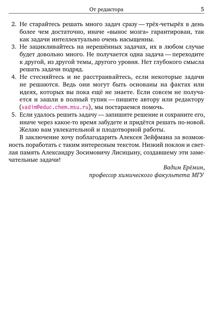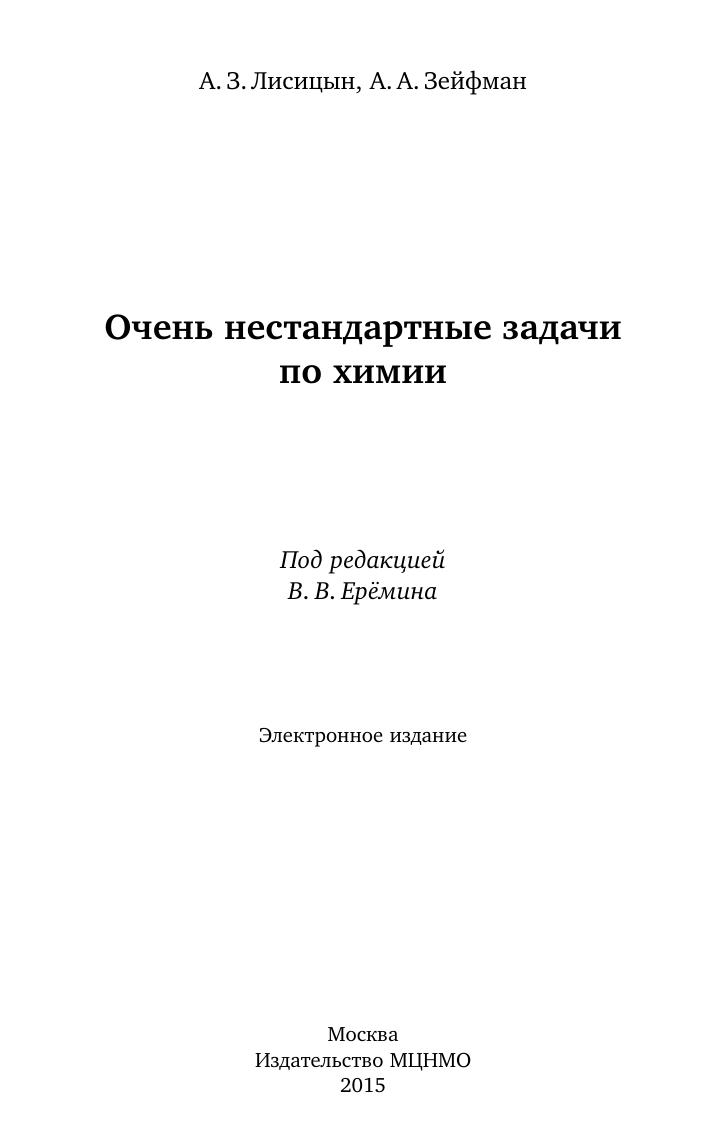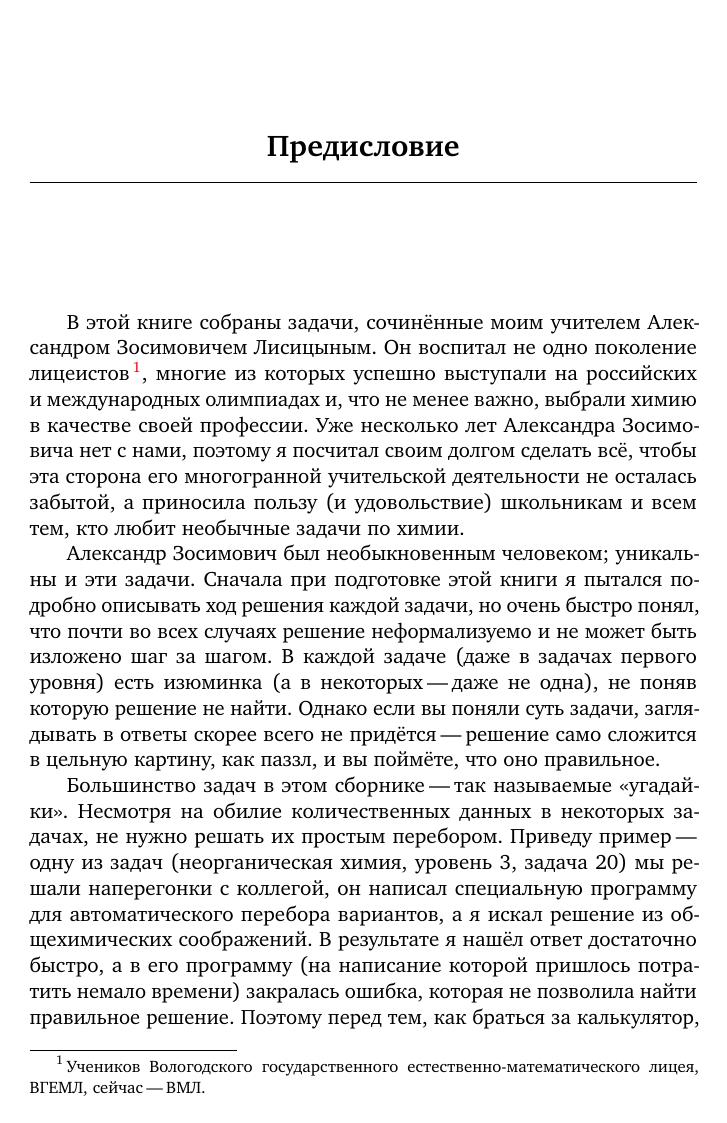 Сборник содержит более 500 нестандартных задач по неорганической, органической и физической химии. Задачи разделены на несколько уровней сложности, ко всем задачам даны ответы и/или указания. Сборник предназначен в первую очередь для подготовки к олимпиадам и для дополнительных занятий по химии в школе: элективных курсов, школьных кружков. Однако он будет интересен не только школьникам и учителям, но и студентам, преподавателям, научным работникам—всем, кто связан с химией и интересуется красивыми и необычными химическими структурами и превращениями.