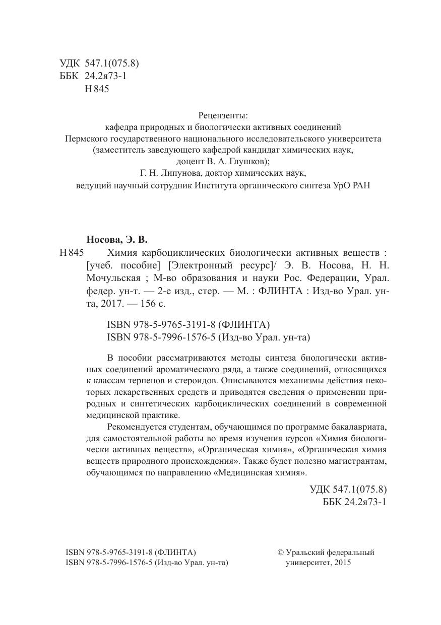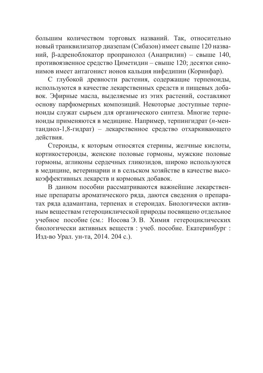 В пособии рассматриваются методы синтеза биологически активных соединений ароматического ряда, а также соединений, относящихся к классам терпенов и стероидов. Описываются механизмы действия некоторых лекарственных средств и приводятся сведения о применении природных и синтетических карбоциклических соединений в современной медицинской практике. Рекомендуется студентам, обучающимся по программе бакалавриата, для самостоятельной работы во время изучения курсов «Химия биологически активных веществ», «Органическая химия», «Органическая химия веществ природного происхождения». Также будет полезно магистрантам, обучающимся по направлению «Медицинская химия».
