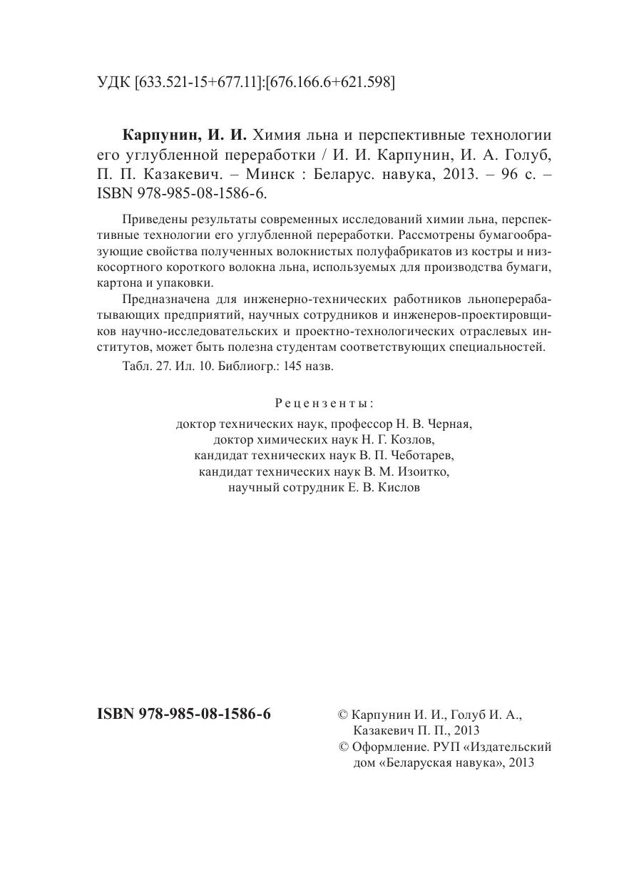 Приведены результаты современных исследований химии льна, перспективные технологии его углубленной переработки. Рассмотрены бумагообразующие свойства полученных волокнистых полуфабрикатов из костры и низкосортного короткого волокна льна, используемых для производства бумаги, картона и упаковки. Предназначена для инженерно-технических работников льноперерабатывающих предприятий, научных сотрудников и инженеров-проектировщиков научно-исследовательских и проектно-технологических отраслевых институтов, может быть полезна студентам соответствующих специальностей