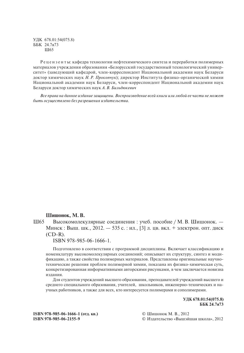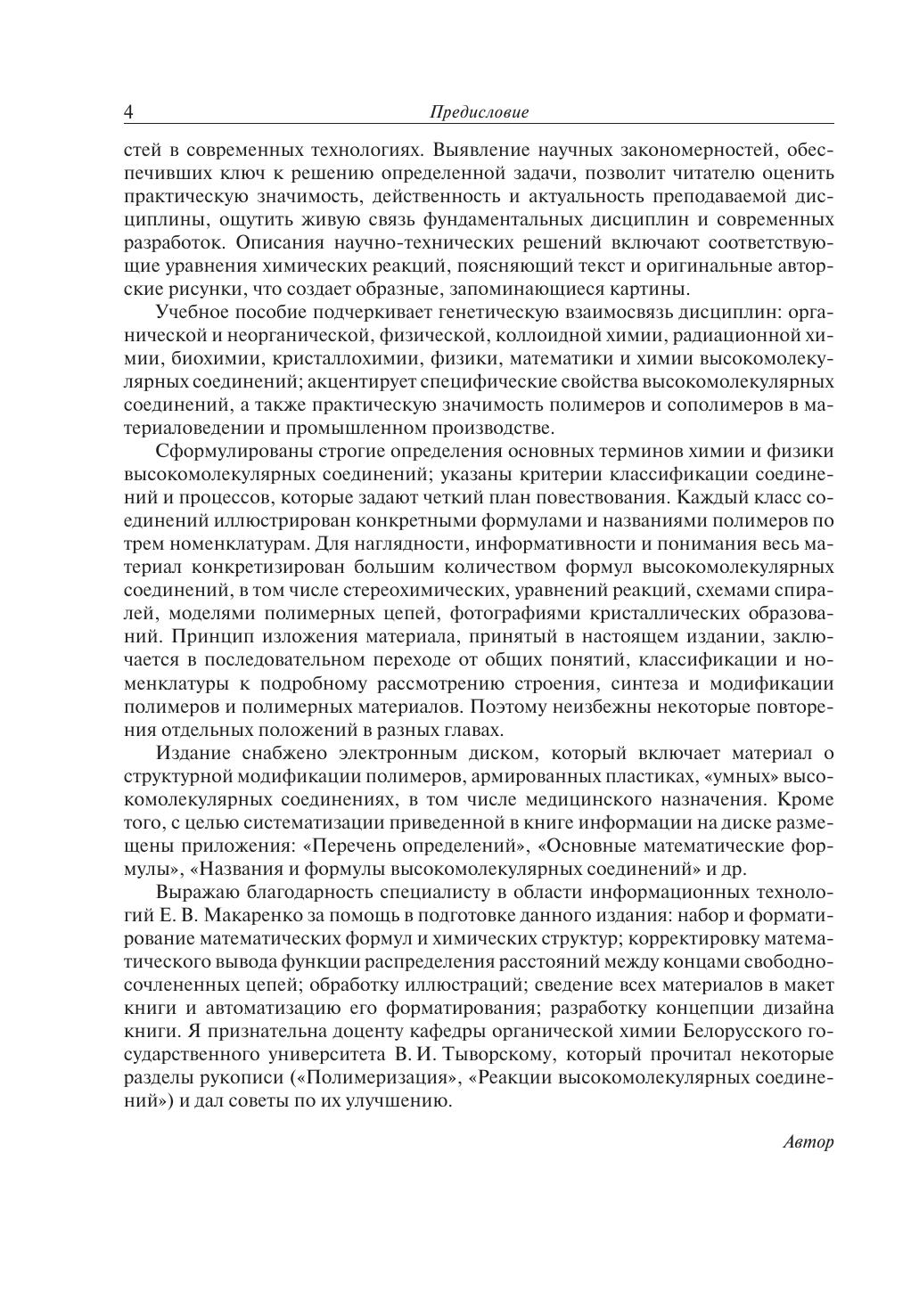 Подготовлено в соответствии с программой дисциплины. Включает классификацию и номенклатуру высокомолекулярных соединений описывает их структуру, синтез и модификацию, а также свойства полимерных материалов. Представлены оригинальные научно-технические решения проблем полимерной химии, показана их физико-химическая суть, конкретизированная информативными авторскими рисунками, в чем заключается новизна издания. Для студентов вузов, преподавателей вузов и ССУЗов, учителей, школьников, инженерно-технических и научных работников, а также для всех, кто интересуется полимерами и сополимерами.