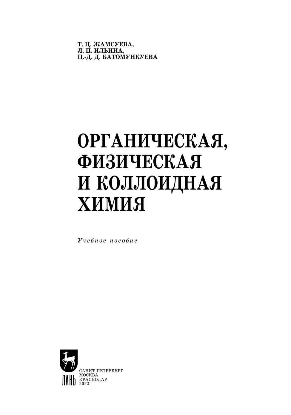 Органическая, физическая и коллоидная химия