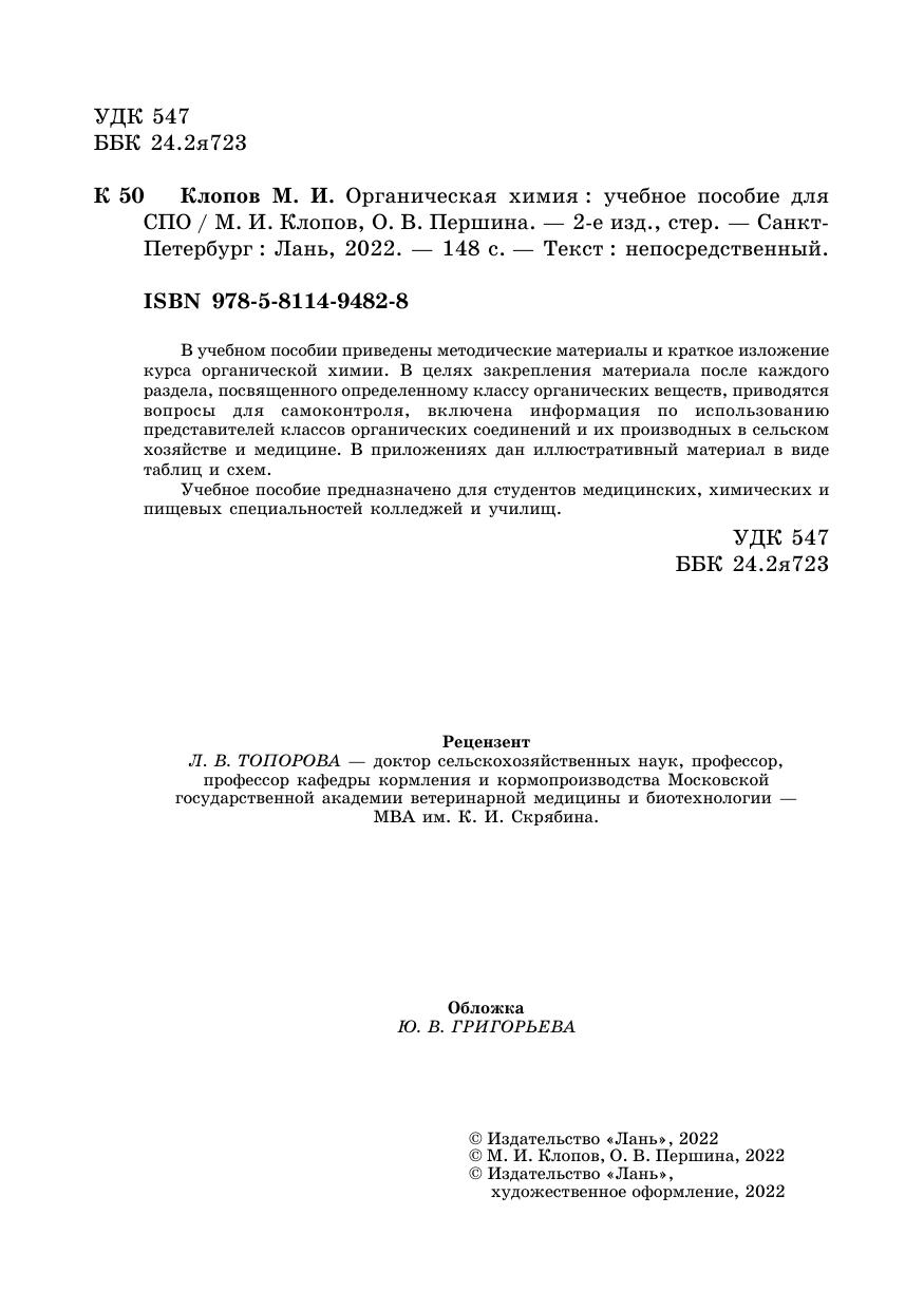 и схем. Учебное пособие предназначено для студентов медицинских, химических и пищевых специальностей колледжей и училищ.