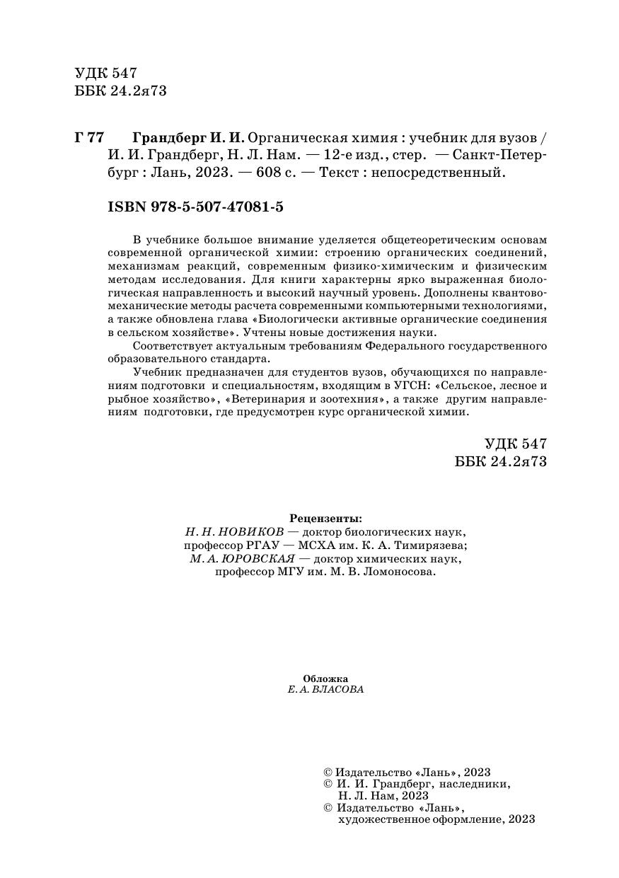 В учебнике большое внимание уделяется общетеоретическим основам со временной органической химии: строению органических соединений, механизмам реакций, современным физико-химическим и физическим методам исследования. Для книги характерны ярко выраженная биологическая направленность и высокий научный уровень. Дополнены квантово-механические методы расчета современными компьютерными технологиями, а также обновлена глава «Биологически активные органические соединения в сельском хозяйстве». Учтены новые достижения науки.Соответствует актуальным требованиям Федерального государственного образовательного стандарта.Для студентов вузов, обучающихся по направлениям подготовки и специальностям, входящим в УГСН: «Сельское, лесное и рыбное хозяйство», «Ветеринария и зоотехния», а также другим направлениям подготовки, где предусмотрен курс органической химии.