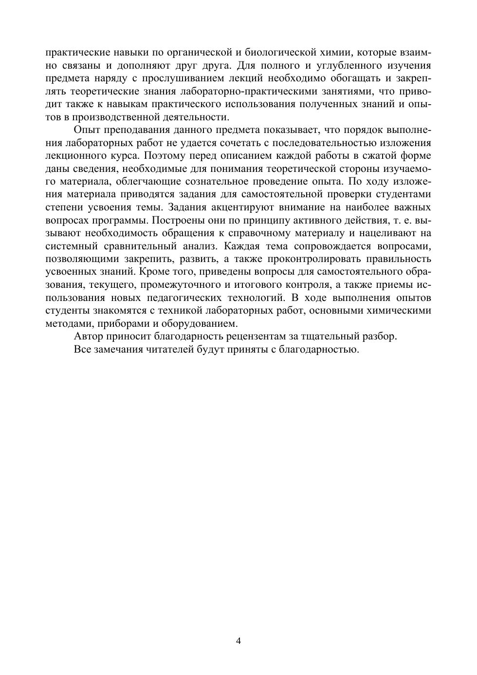 Настоящее учебное пособие написано в соответствии с учебной программой по курсу «Органическая и биологическая химия» для направлений подготовки «Продукты питания животного происхождения» и «Водные биоресурсы и аквакультура». При выполнении лабораторных заданий студенты приобретут навыки проведения экспериментальных работ, интерпретации результатов анализа и их оформления в виде отчетов, что будет способствовать углублению теоретических знаний.