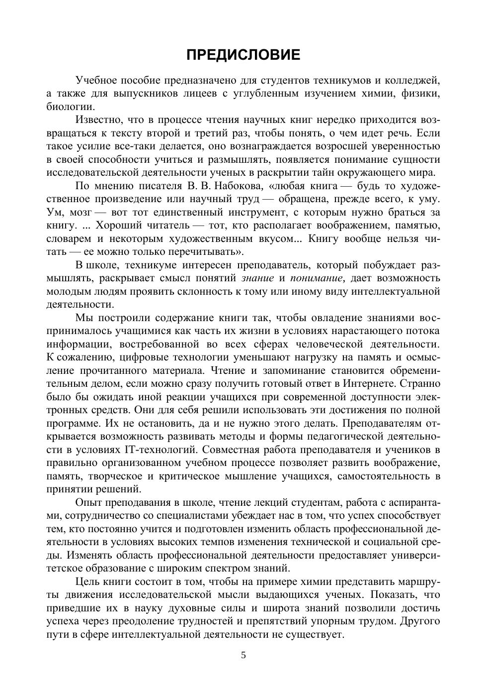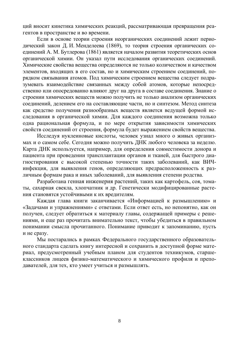 Учебное пособие охватывает сферы человеческой деятельности, связанные с химическими превращениями неорганических и органических веществ от микросистем, представленных атомами и молекулами, до макросистем — твердых, жидких, газообразных веществ, в том числе живых систем, включая человека. Объясняется, что химическая реакция — центральное событие в химии, раскрывающее смысл движения исследовательской мысли ученых — получение веществ с заданными свойствами в соответствии с квантовыми правилами и принципами, с законами химической термодинамики и кинетики химических реакций. С расшифровкой генома живых организмов, в том числе генома человека, появился реальный потенциал для технологий будущего. Соответствует современным требованиям Федерального государственного образовательного стандарта среднего профессионального образования и профессиональным квалификационным требованиям. Пособие предназначено для студентов СПО.