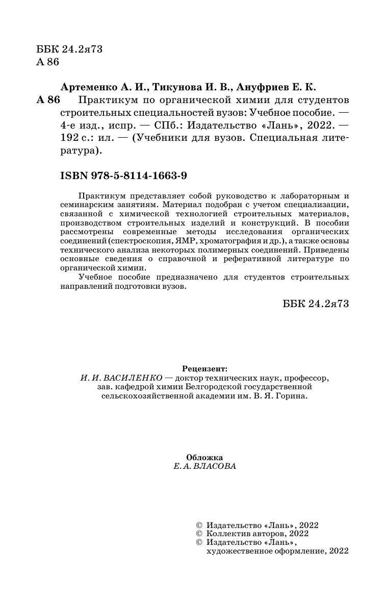 Практикум представляет собой руководство к лабораторным и семинарским занятиям. Материал подобран с учетом специализации, связанной с химической технологией строительных материалов, производством строительных изделий и конструкций. В пособии рассмотрены современные методы исследования органических соединений (спектроскопия, ЯМР, хроматография и др.), а также основы технического анализа некоторых полимерных соединений. Приведены основные сведения о справочной и реферативной литературе по органической химии. Учебное пособие предназначено для студентов строительных направлений подготовки вузов.
