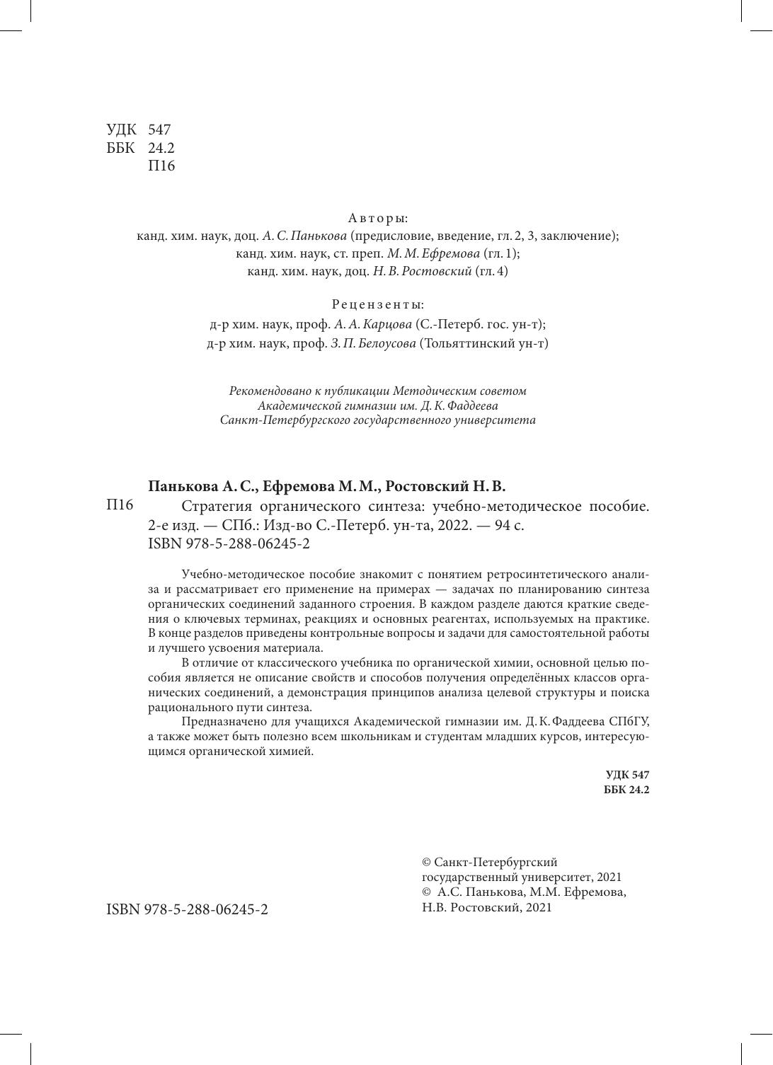 Учебно-методическое пособие знакомит с понятием ретросинтетического анали-