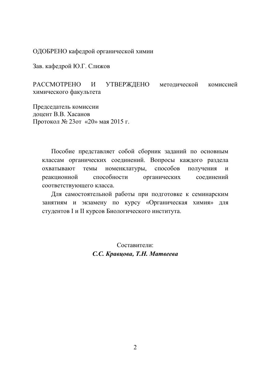 Пособие представляет собой сборник заданий по основным классам органических соединений. Вопросы каждого раздела охватывают темы номенклатуры, способов получения и реакционной способности органических соединений соответствующего класса. Для самостоятельной работы при подготовке к семинарским занятиям и экзамену по курсу «Органическая химия» для студентов I и II курсов Биологического института.