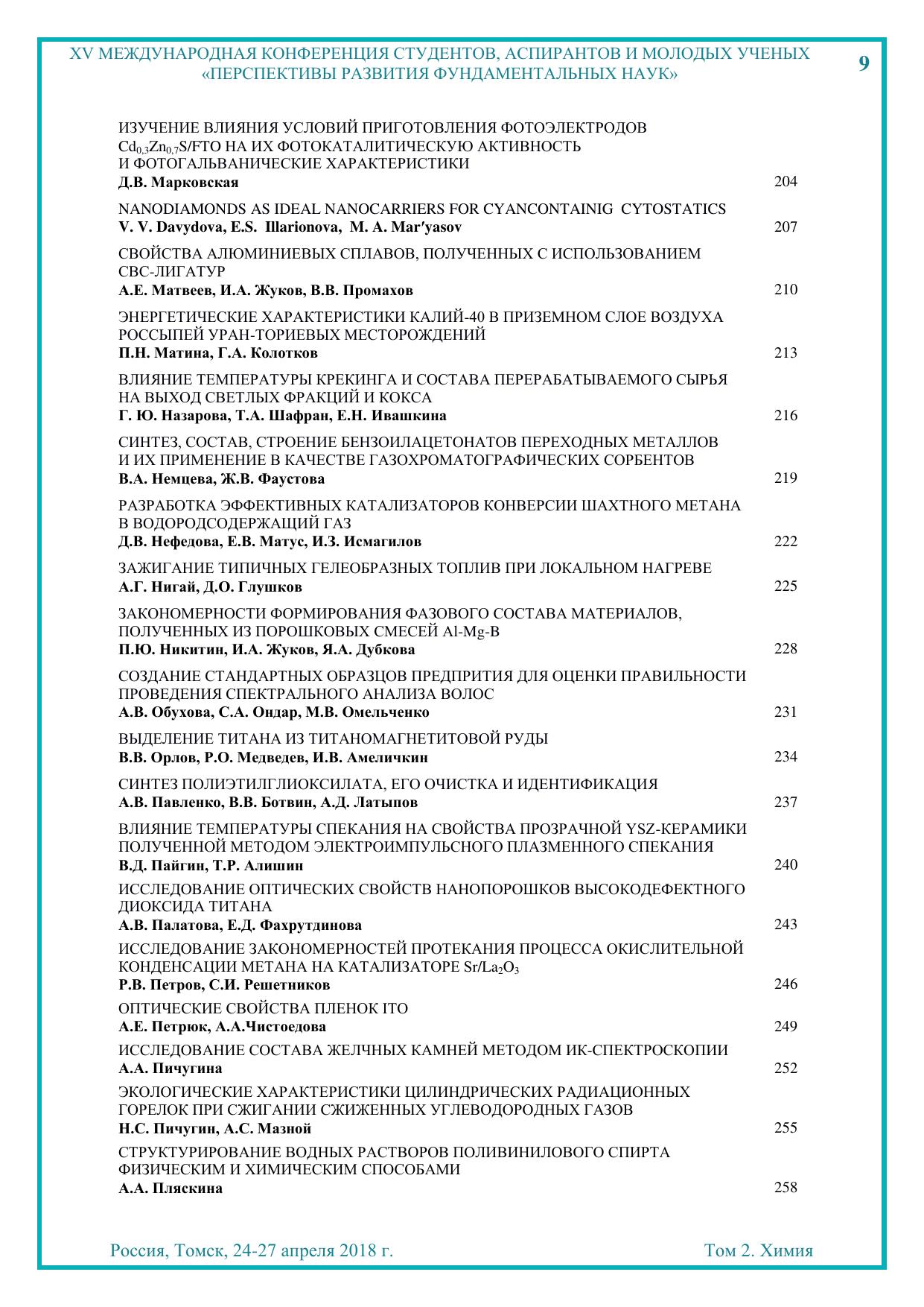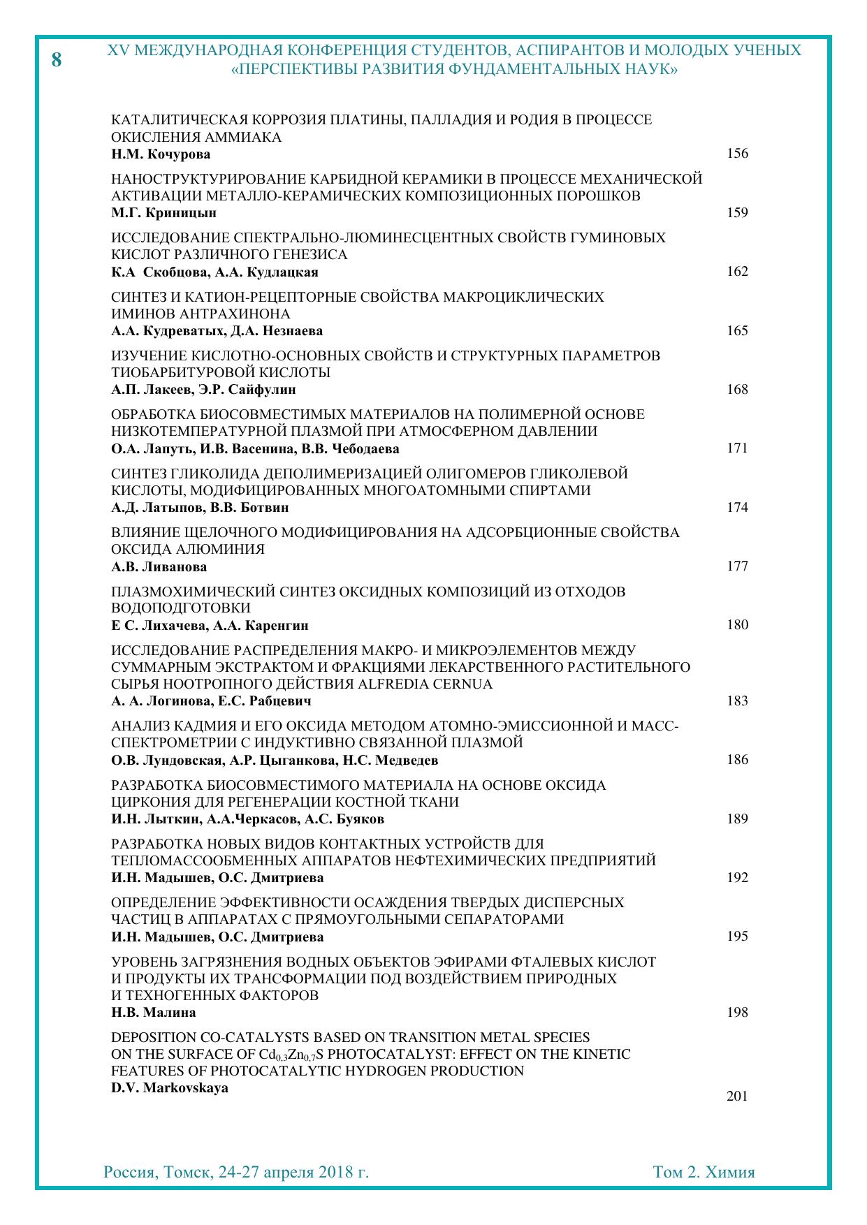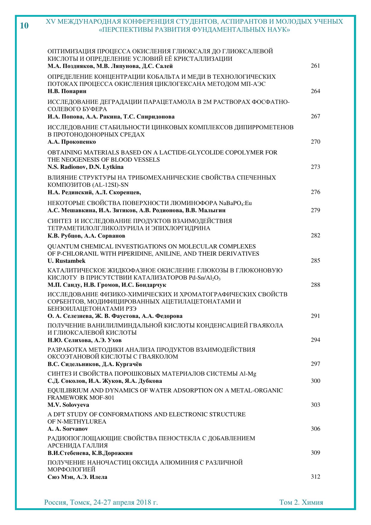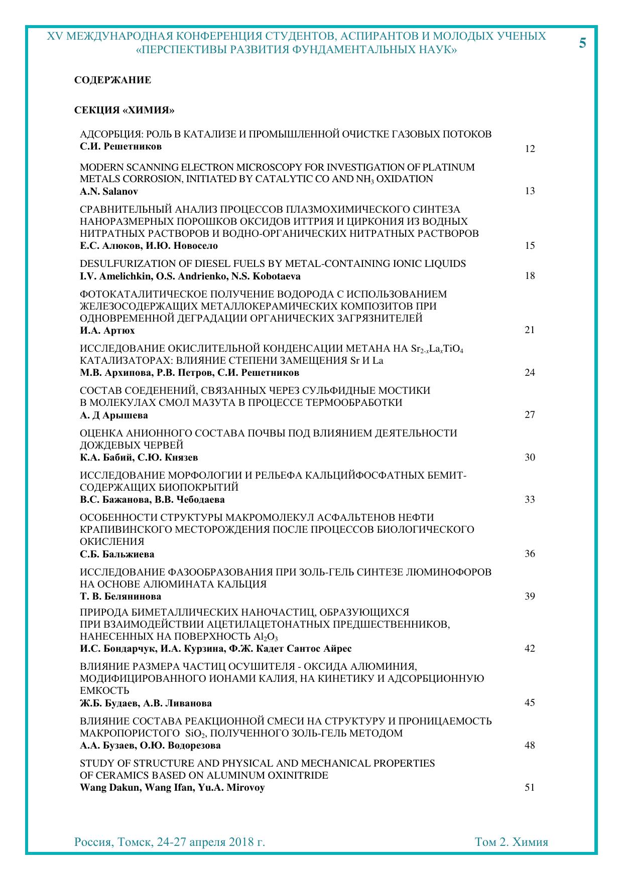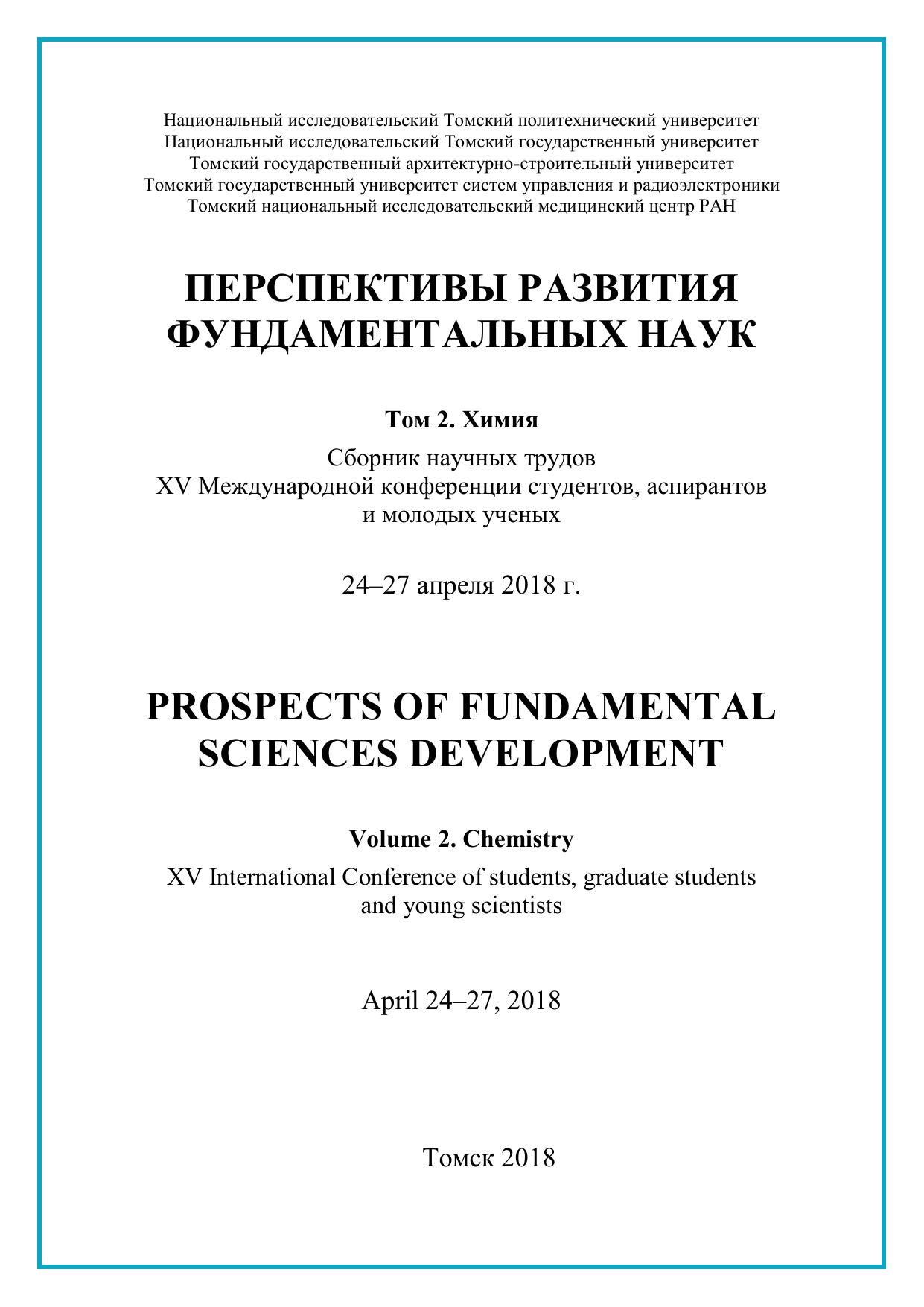 Сборник содержит труды участников XV Международной конференции студентов, аспирантов и молодых учёных «Перспективы развития фундаментальных наук», представленные на секции «Химия». Для студентов, аспирантов, молодых ученых и преподавателей, специализирующихся в области синтеза и изучения свойств функциональных материалов, физико-химических методов исследования материалов, наноматериалов, экологии, органического синтеза, а также катализа и нефтехимии.