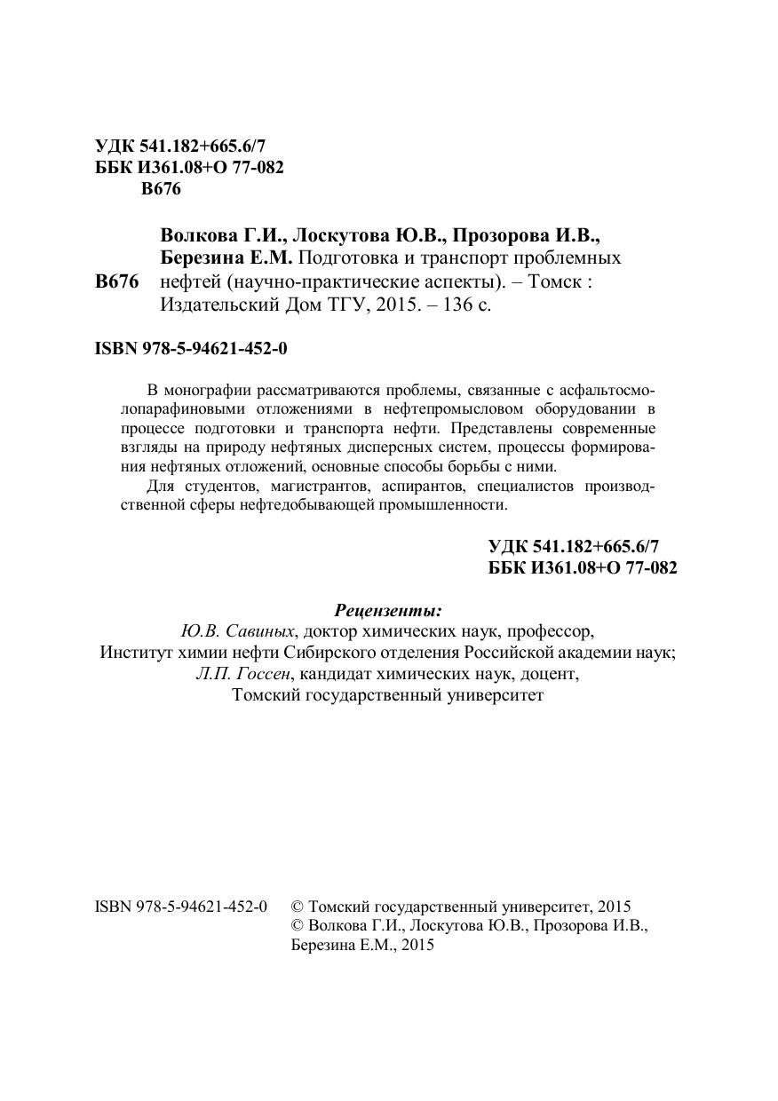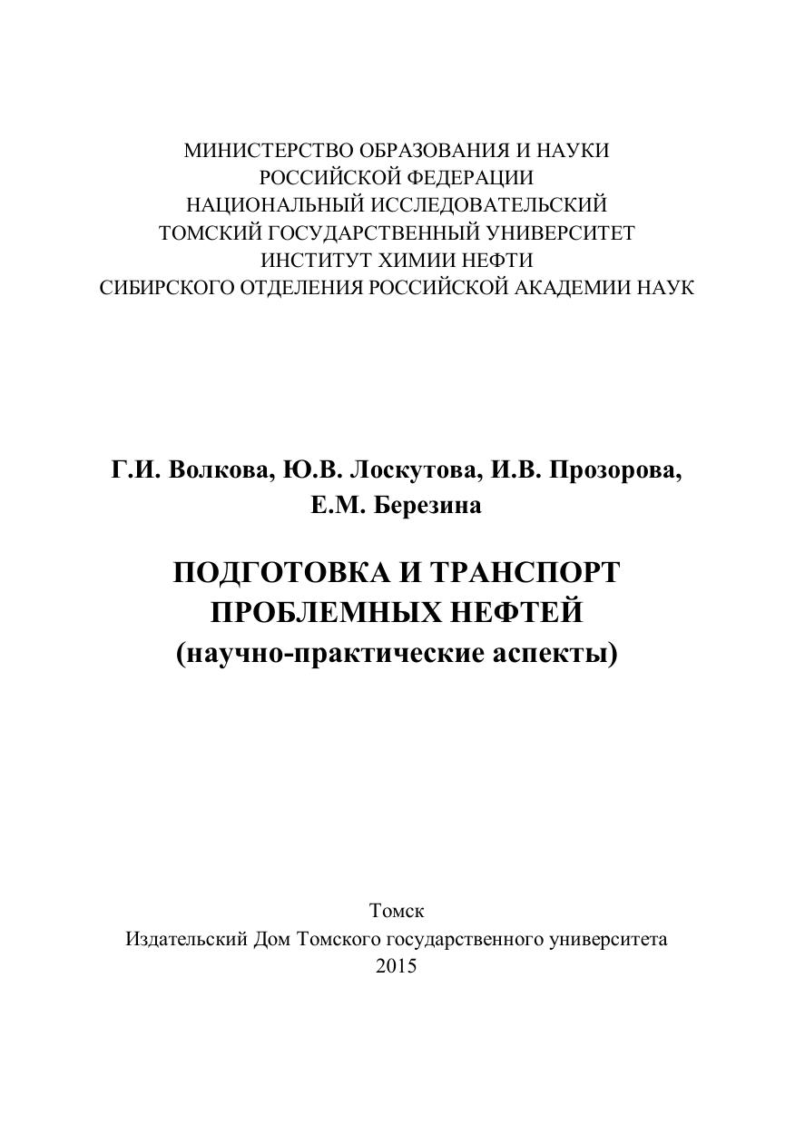 Подготовка и транспорт проблемных нефтей (научно-практические аспекты)