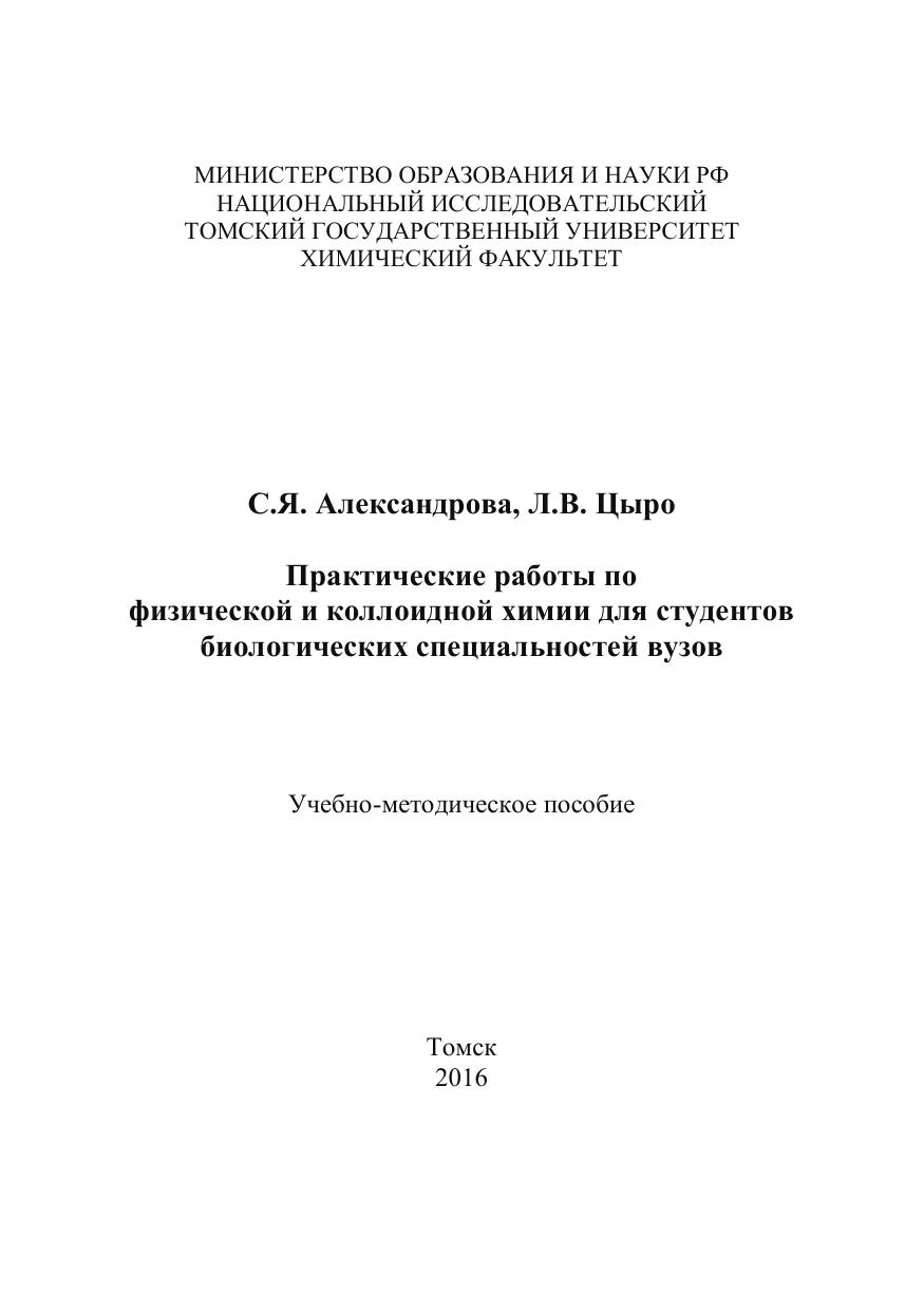 Практические работы по физической и коллоидной химии для студентов биологических специальностей вузов