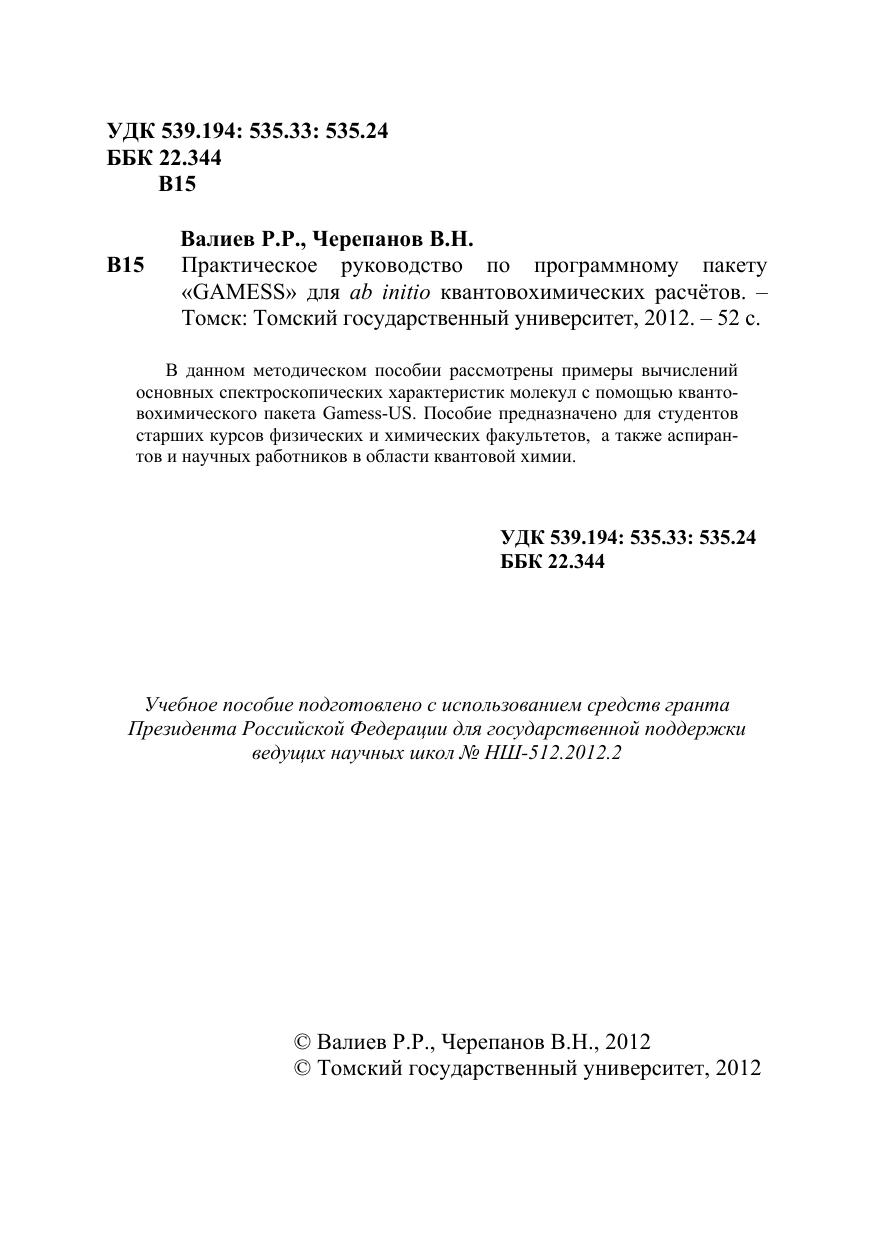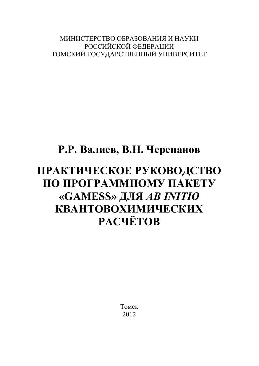 Практическое руководство по программному пакету «GAMESS» для ab initio квантовохимических расчётов