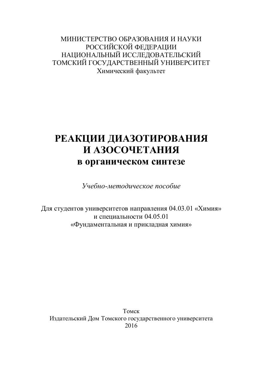 Для студентов университетов направления 04.03.01 «Химия» и специальности 04.05.01 «Фундаментальная и прикладная химия»