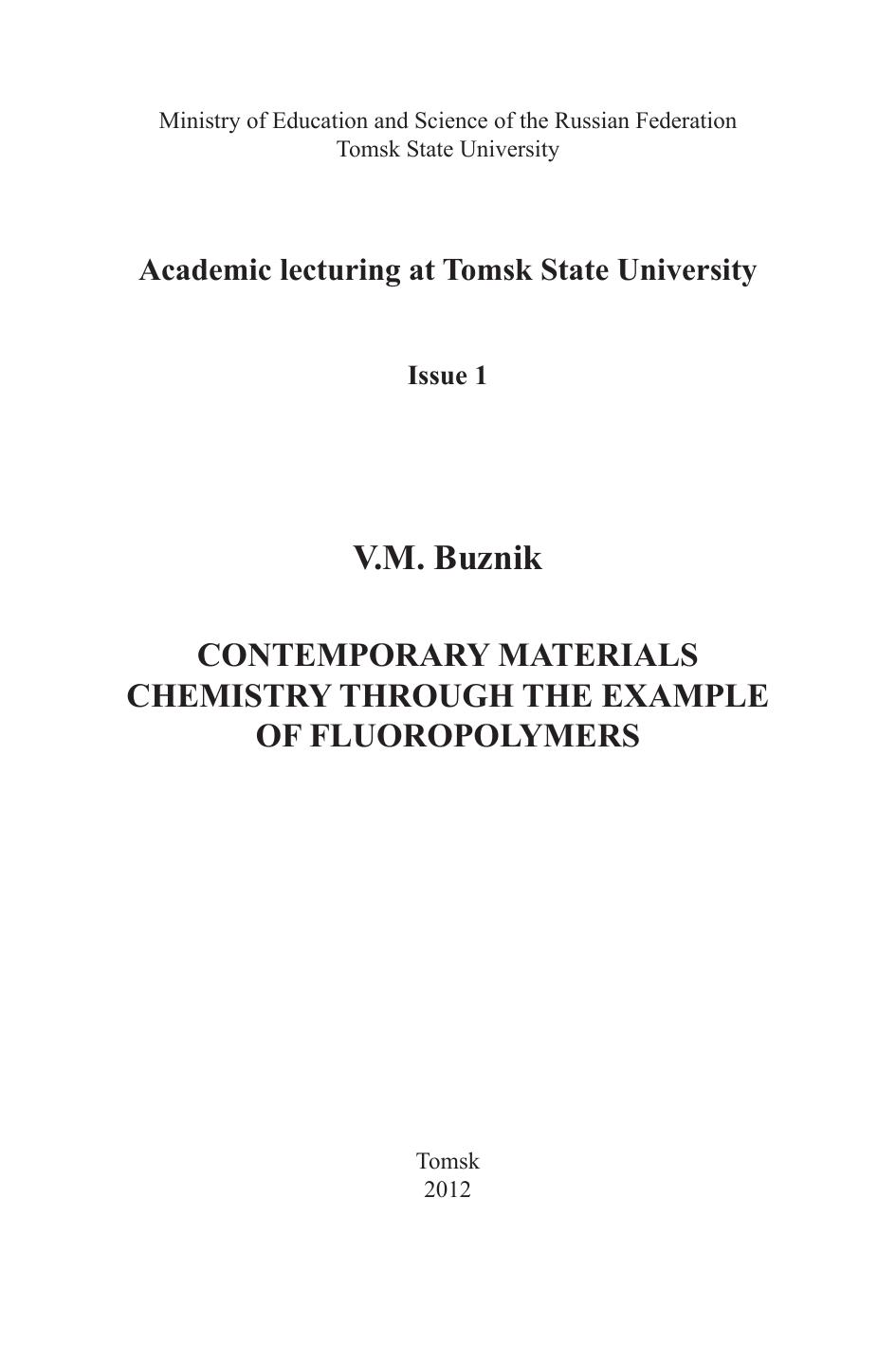 Современное материаловедение на примере фторполимеров. Выпуск 1