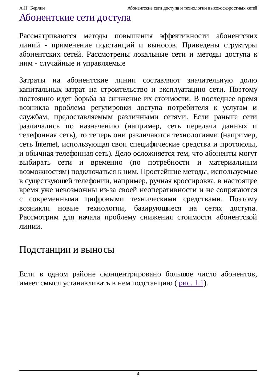 Приведены принципы применения выносов и подстанций, локальные сети. Рассмотрены методы случайного доступа и методы управляемого доступа. Даются основные сведения о высокоскоростной технологии передачи информации