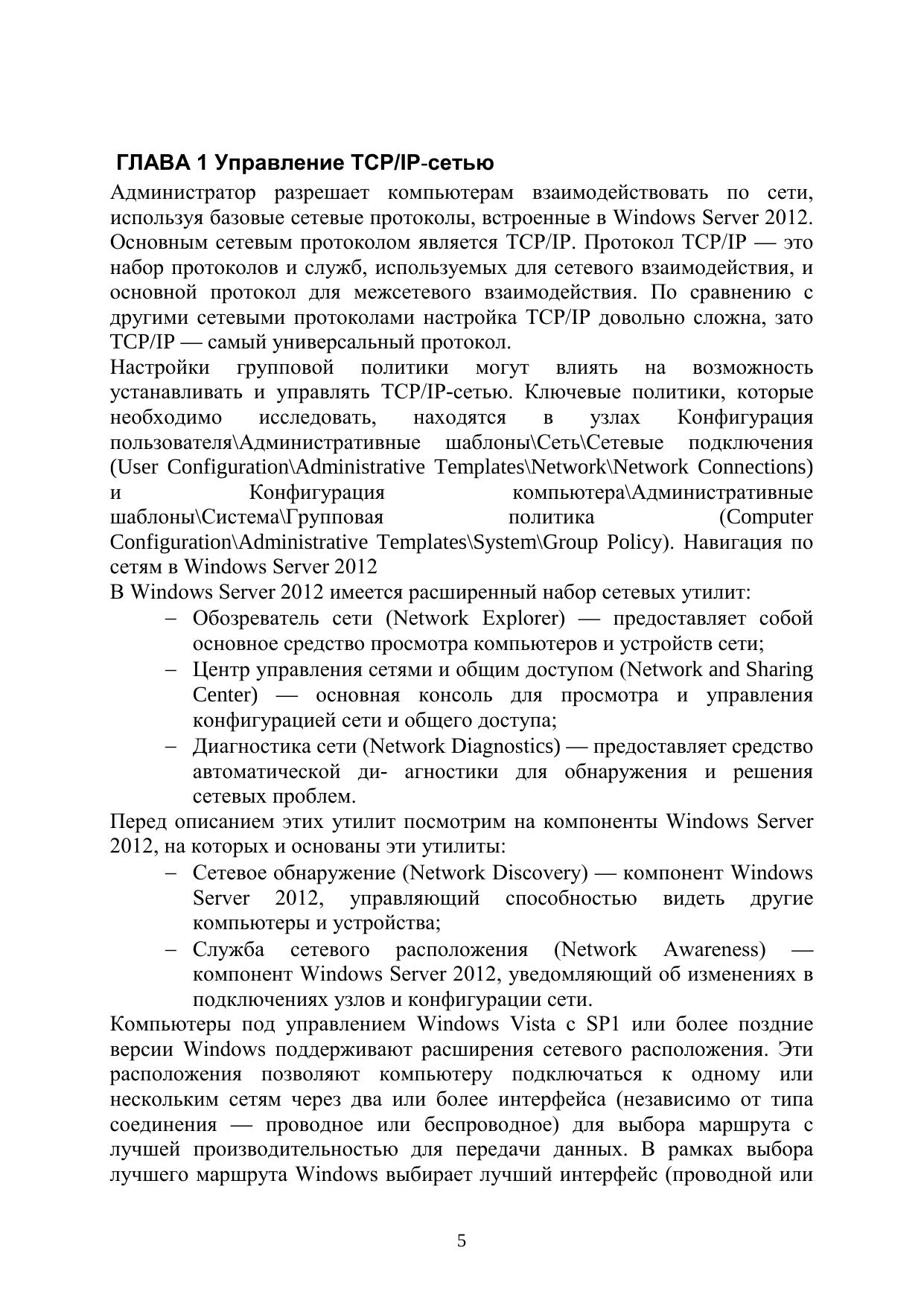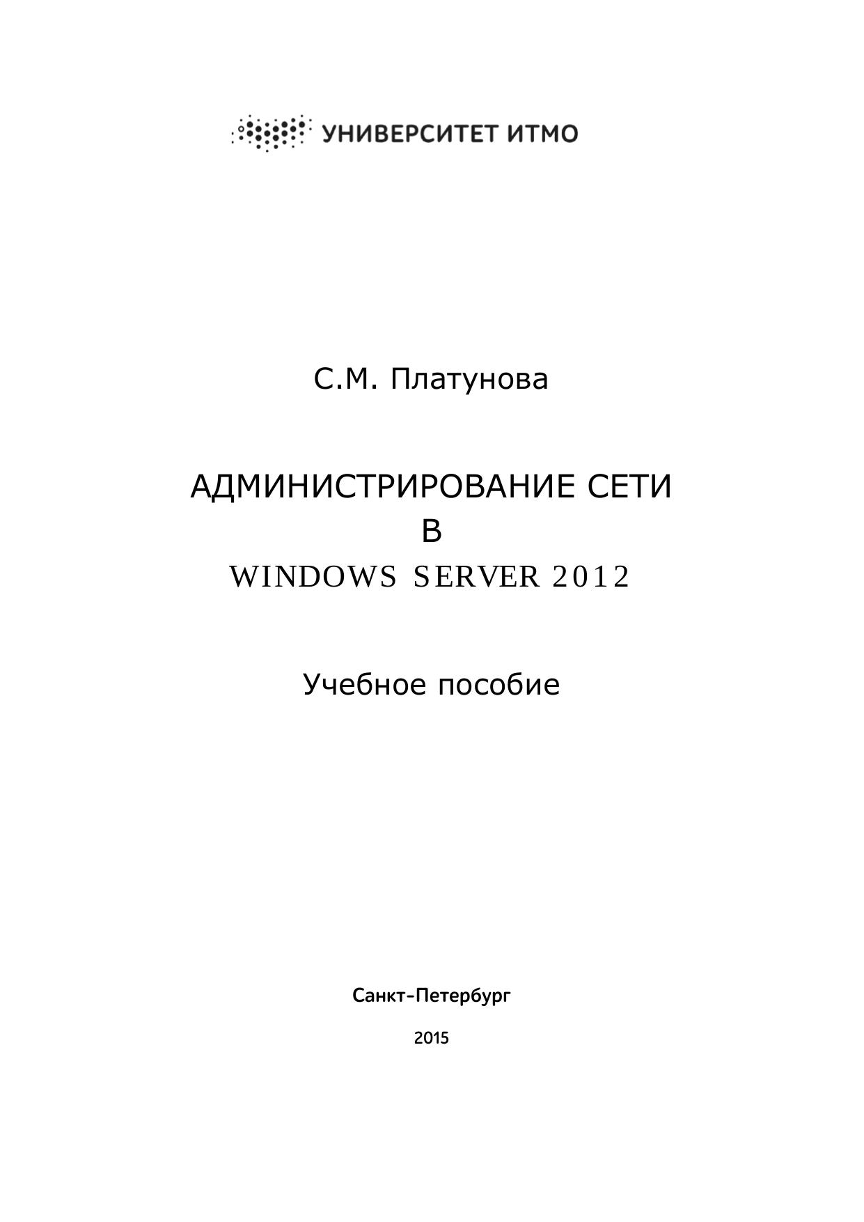 В учебном пособии содержатся основные сведения об администрировании сети под управлением операционной системы Microsoft Windows Server 2012, такие как: Управление TCP/IP сетью, запуск DCHP-клиентов и серверов, оптимизация DNS. Пособие адресовано специалистам с высшим и средним профессиональным образованием, имеющим опыт работы в области IT технологий, обучающихся по направлению/специальности: 09.04.01 «Информатика и вычислительная техника» («Системное администрирование аппаратно-программных комплексов»)