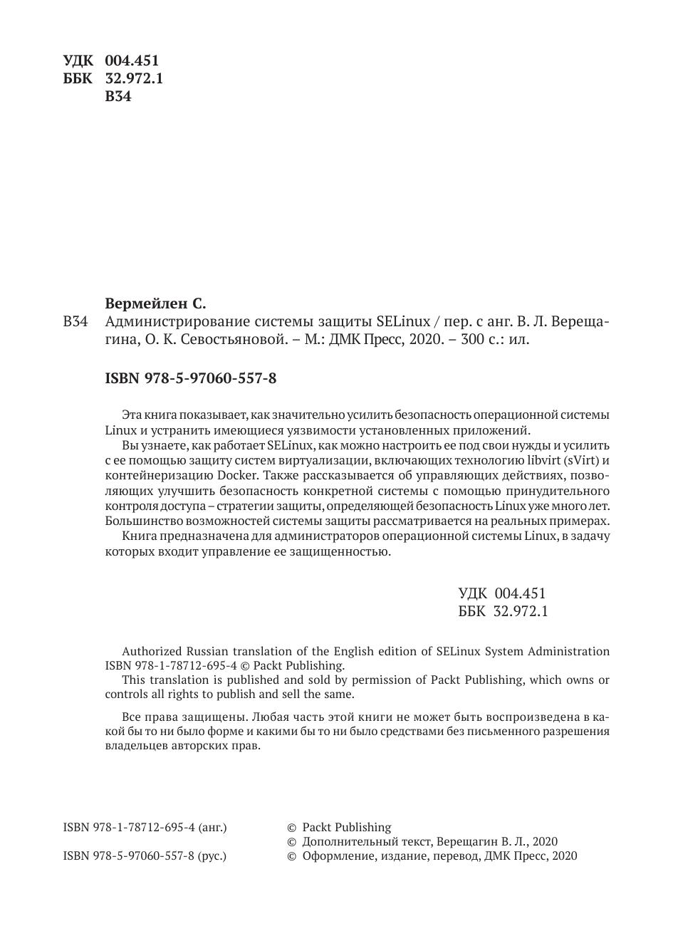 Книга предназначена для администраторов операционной системы Linux, в задачу которых входит управление ее защищенностью.