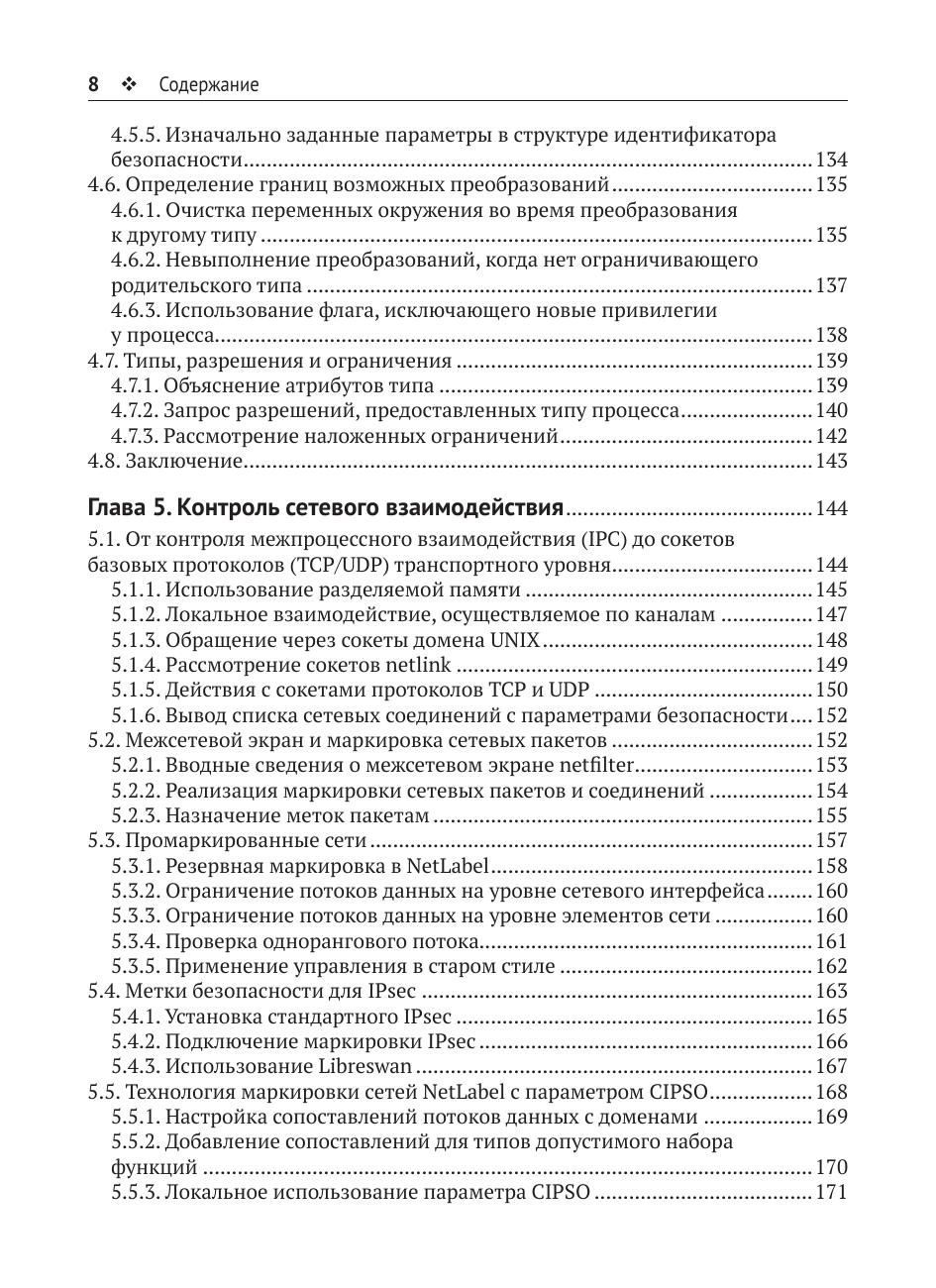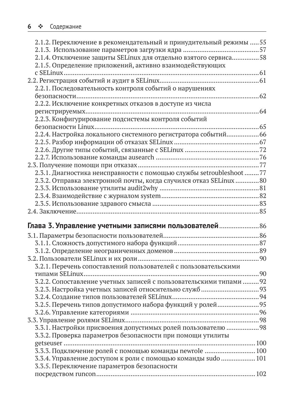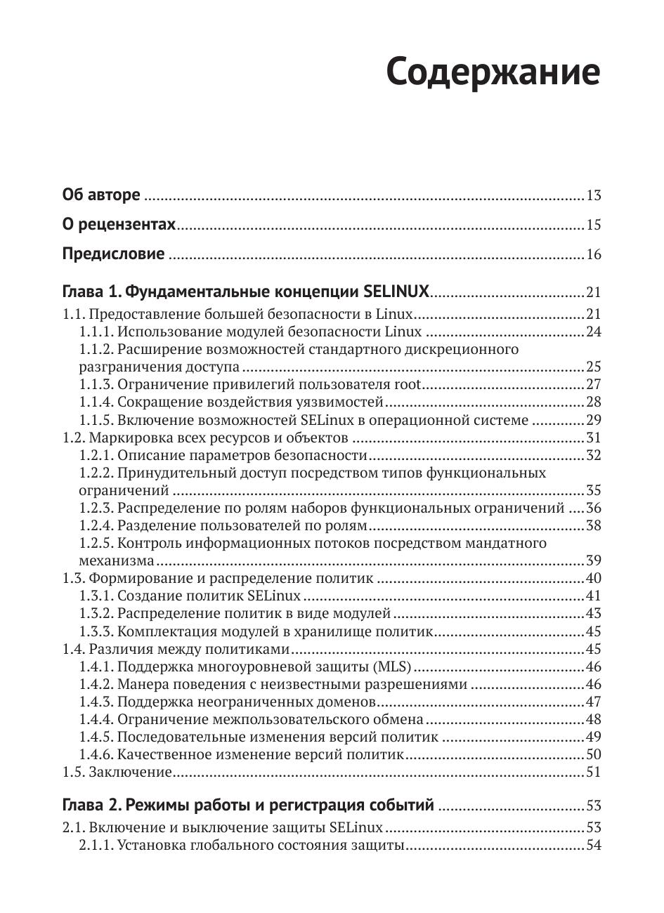 Вы узнаете, как работает SELinux, как можно настроить ее под свои нужды и усилить с ее помощью защиту систем виртуализации, включающих технологию libvirt (sVirt) и контейнеризацию Docker. Также рассказывается об управляющих действиях, позволяющих улучшить безопасность конкретной системы с помощью принудительного контроля доступа – стратегии защиты, определяющей безопасность Linux уже много лет. Большинство возможностей системы защиты рассматривается на реальных примерах.