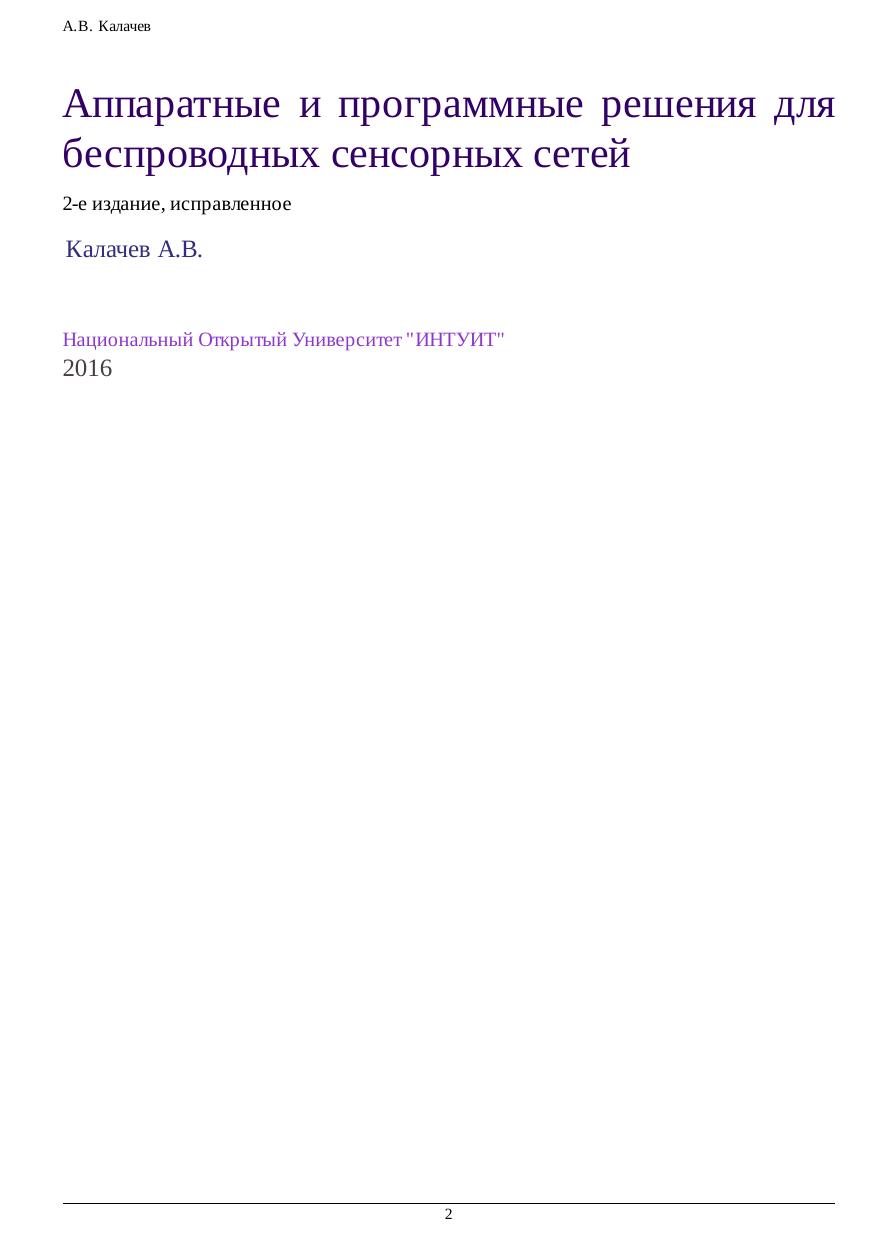 Аппаратные и программные решения для беспроводных сенсорных сетей