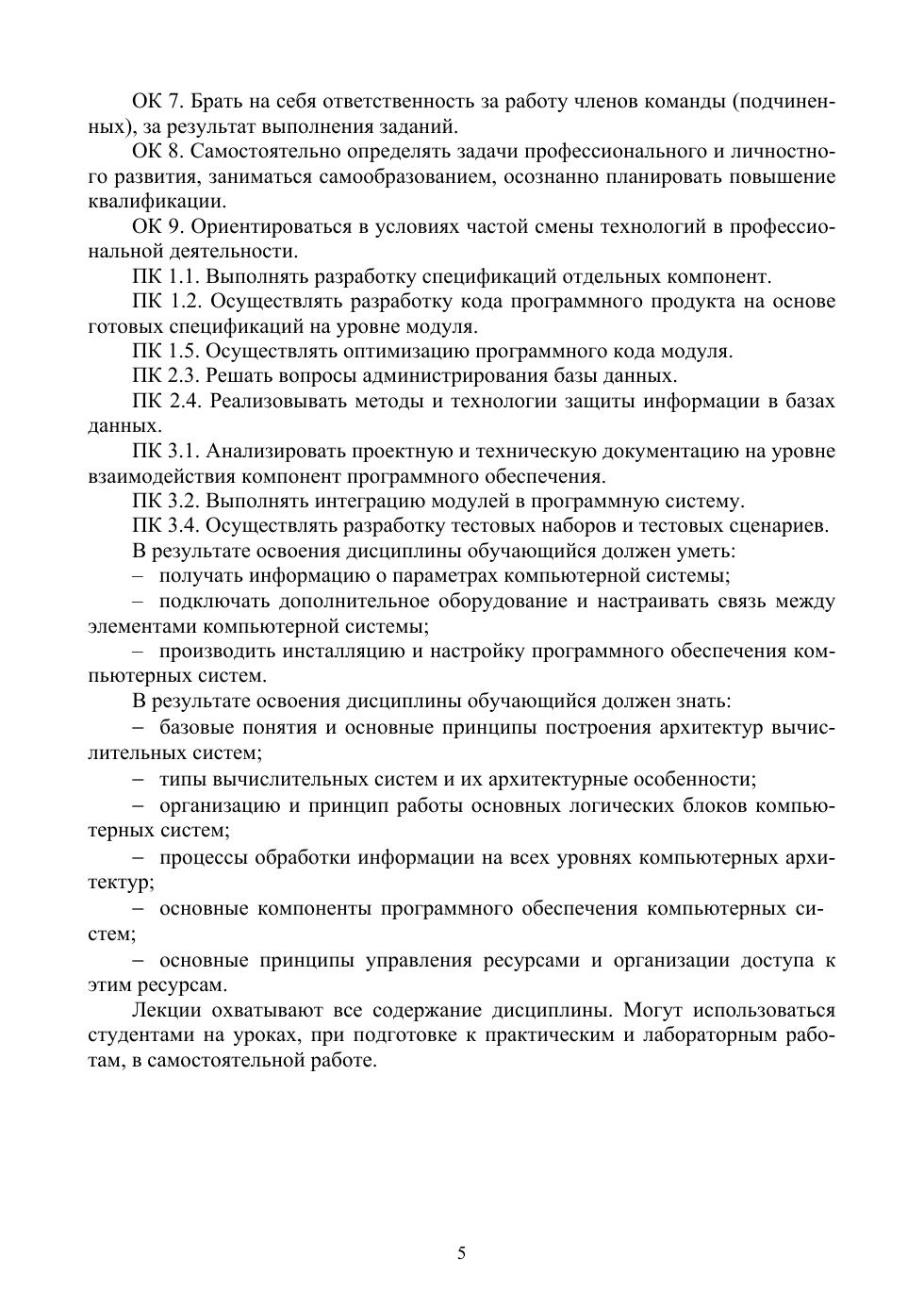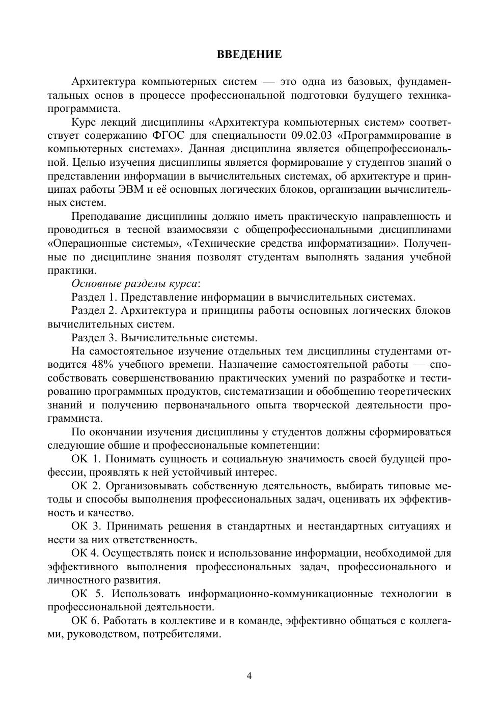 Учебная дисциплина «Архитектура компьютерных систем» рассчитана на 74 аудиторных часа и предназначена для студентов 2 курса специальности «Программирование в компьютерных системах». Целью изучения дисциплины является формирование у студентов знаний о представлении информации в вычислительных системах, об архитектуре и принципах работы ЭВМ и её основных логических блоков, организации вычислительных систем. Содержание и структура пособия соответствуют требованиям Государственного образовательного стандарта среднего профессионального образования. Издание поможет систематизировать знания, полученные на лекциях и практических занятиях, выполнить внеаудиторную самостоятельную работу, подготовиться к текущему и промежуточному контролю. Соответствует современным требованиям Федерального государственного образовательного стандарта среднего профессионального образования и профессиональным квалификационным требованиям. Пособие адресовано студентам средних образовательных учреждений, а также всем интересующимся данной тематикой.