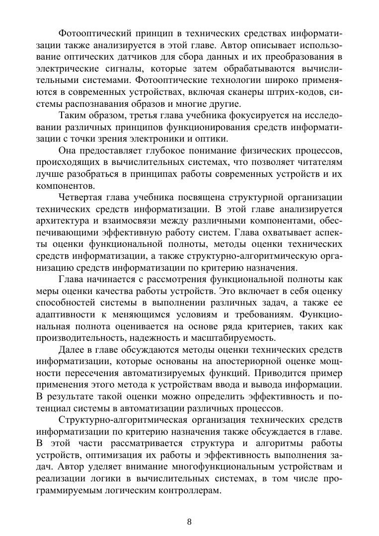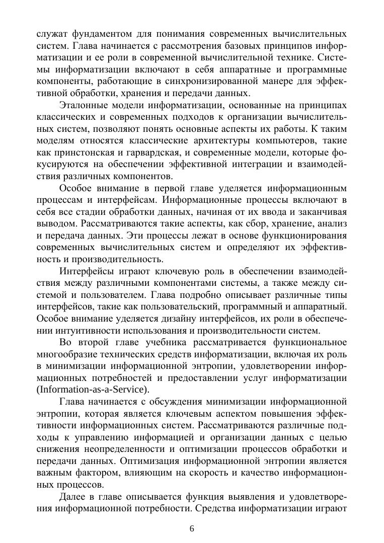 Целью данного учебника является предоставление студентам и практикам подробного описания основ и современных аспектов архитектуры технических средств информатизации. В первой главе освещаются основные понятия и модели информатизации, такие как информационные процессы, интерфейсы и теоретико-множественный подход к описанию информационных систем. Во второй главе рассматривается функциональное многообразие технических средств информатизации, включая минимизацию информационной энтропии. В третьей главе анализируются электронная и электрическая природа функционирования средств информатизации, включая оптические, электрические и механические аспекты работы этих устройств. Четвертая глава посвящена структуре организации технических средств информатизации, обсуждаются архитектурные принципы и схемы организации различных типов памяти и устройств управления. Учебник предназначен для студентов колледжей при изучения таких дисциплин, как «Информатика», «Системный анализ», «Вычислительная техника и языки программирования», «Архитектура ЭВМ». Соответствует современным требованиям Федерального государственного образовательного стандарта среднего профессионального образования и профессиональным квалификационным требованиям.