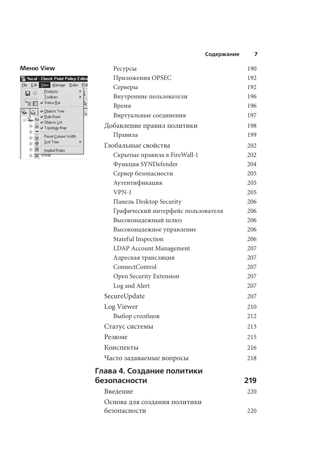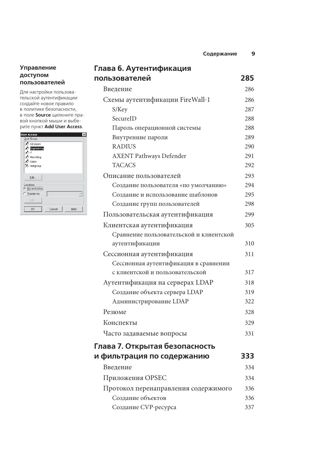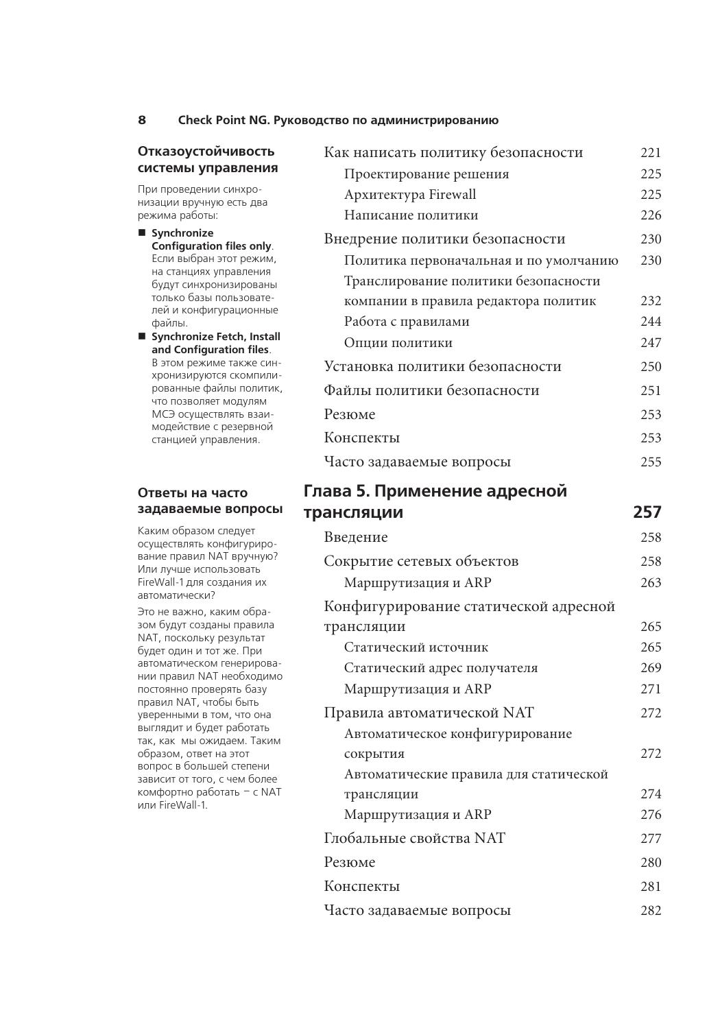 В книге представлены все необходимые инструкции по использованию комплекса продуктов Check Point Next Generation, а также инструменты для создания корпоративной системы информационной безопасности. Check Point VPN-1/FireWall-1 уже многие годы находится далеко впереди конкурентов, а версия Next Gene ration устанавливает новые стандарты в технологиях защиты информации. Авторы не рассчитывали на какой-то опыт предыдущей работы с продуктами Check Point, поэтому в книге последовательно представлены методы установки и настройки VPN-1/FireWall-1 Next Generation, управление сетевыми объектами, создание и внедрение политики безопасности. Подробно рассмотрены схемы аутентификации S/Key, SecureID, OS Password, RADIUS и др., описаны форматы представления информации и отчетности, возможности Check Point по защите удаленных VPN-клиентов с помощью ПО Secure Client и другие аспекты использования продуктов линейки NG.