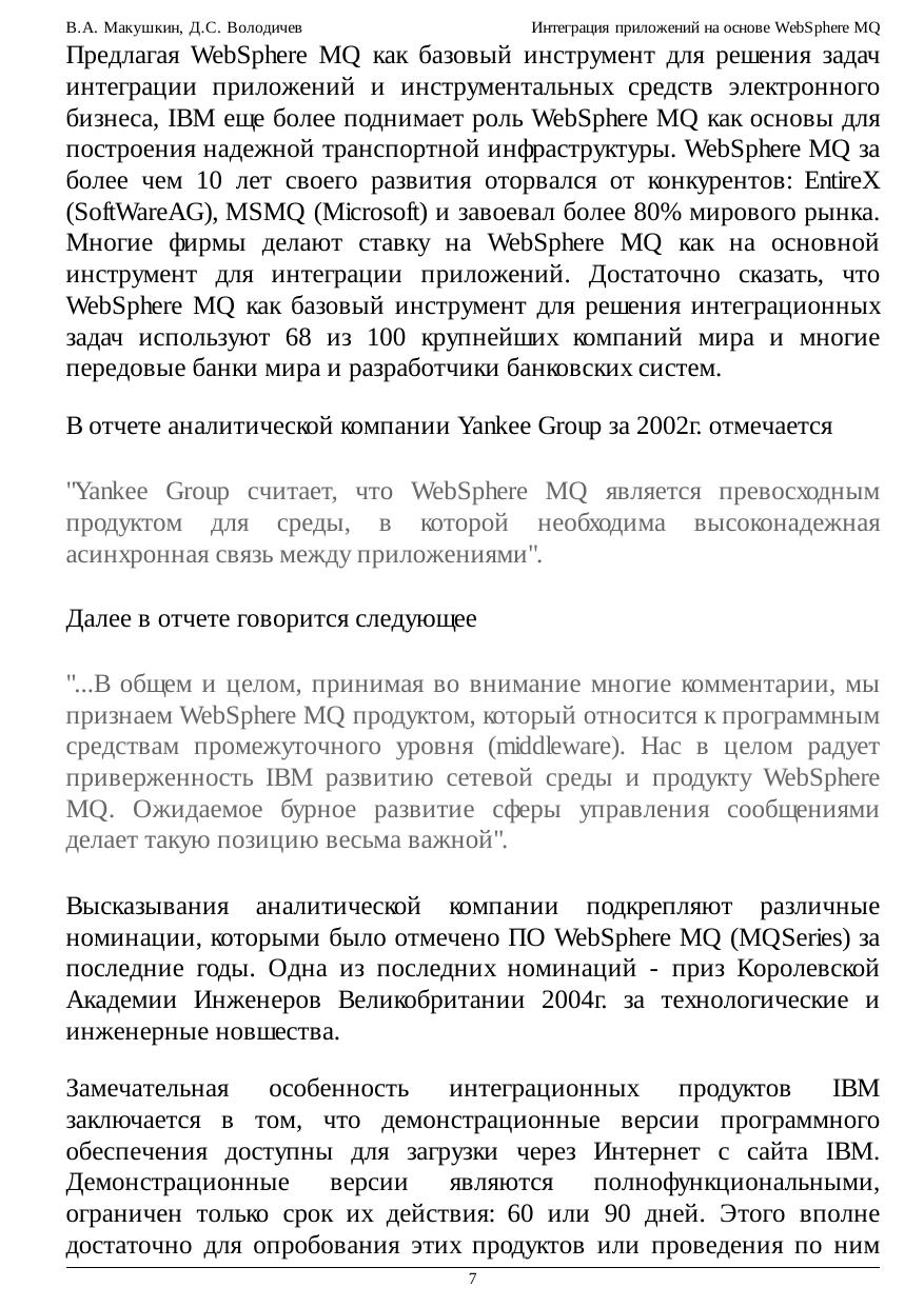 системы WebSphere MQ (MQSeries) фирмы ИБМ, мирового лидера среди продуктов в данном классе. По завершении обучения по курсу лекций слушатели смогут провести установку и
