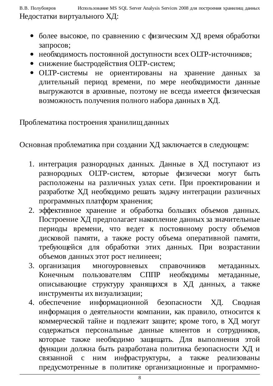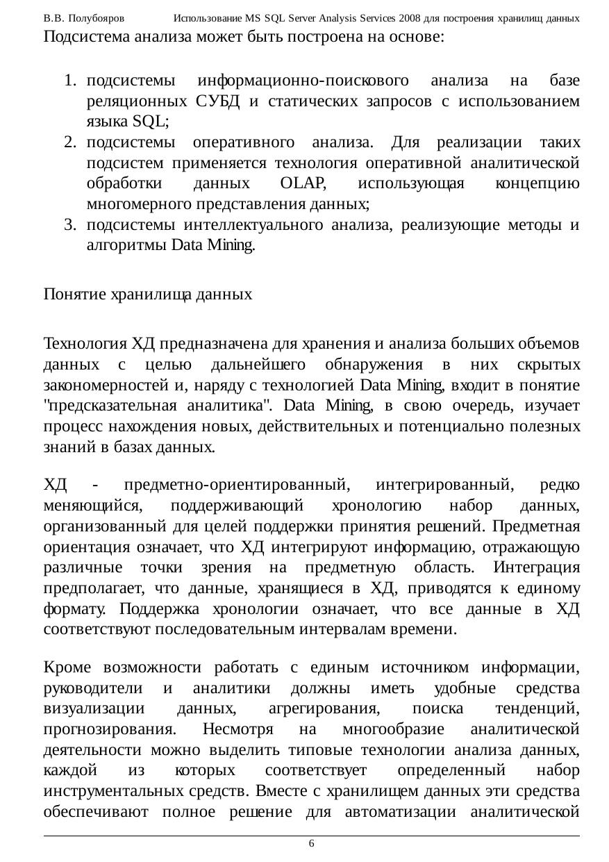 Использование MS SQL Server Analysis Services 2008 для построения хранилищ данных