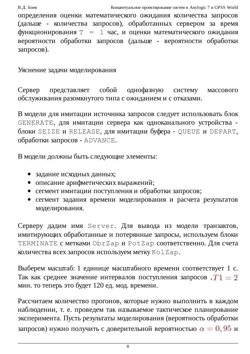 Концептуальное проектирование систем в Anylogic 7 и GPSS World