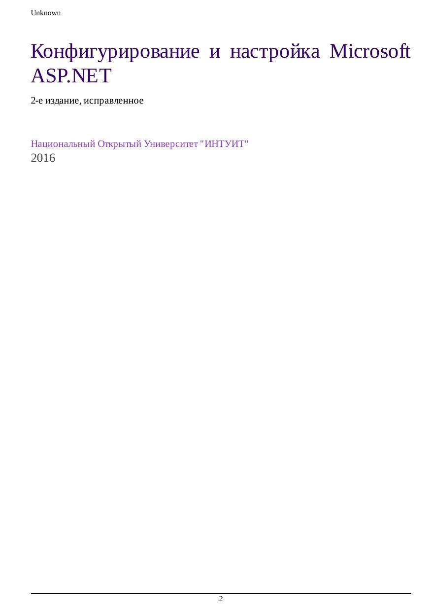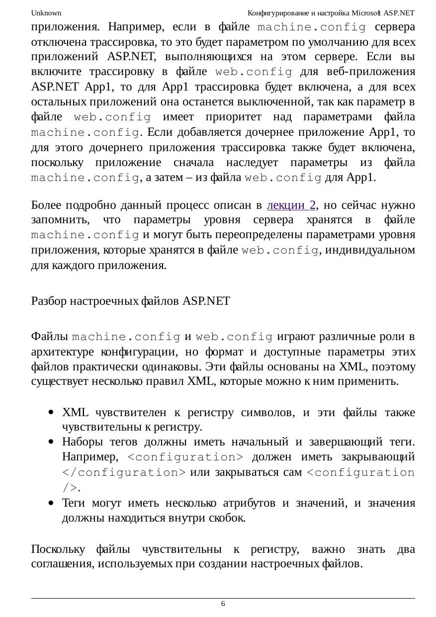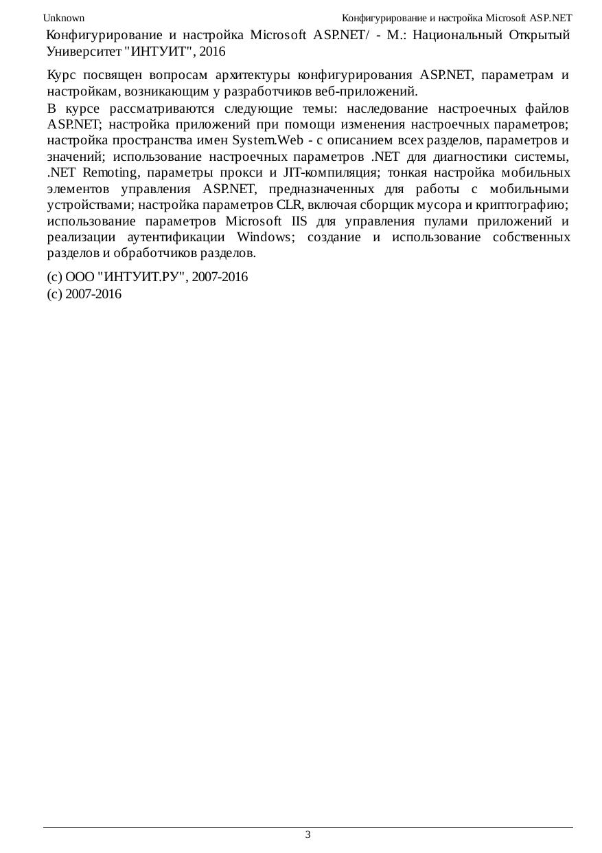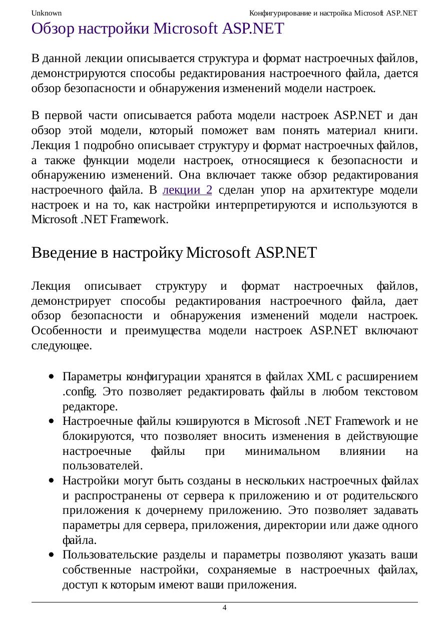 Курс посвящен вопросам архитектуры конфигурирования ASP.NET, параметрам и