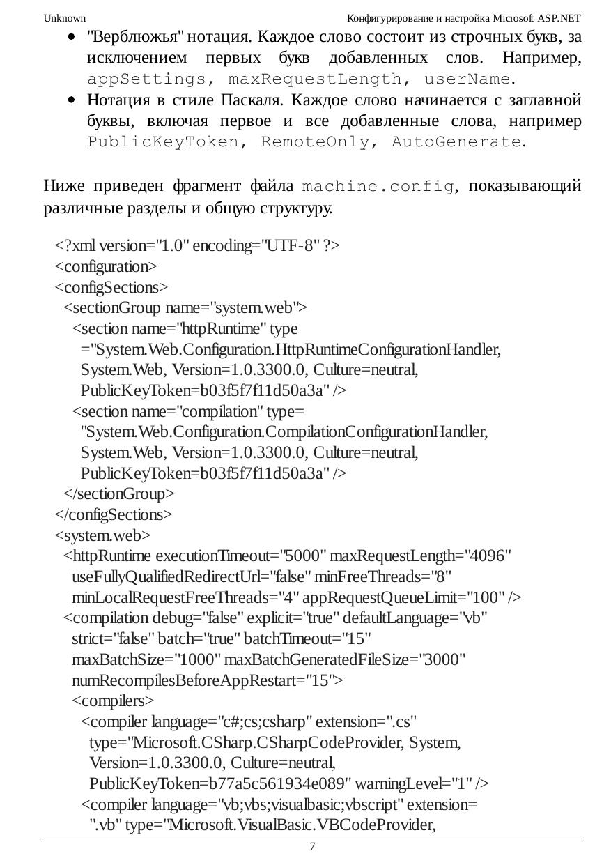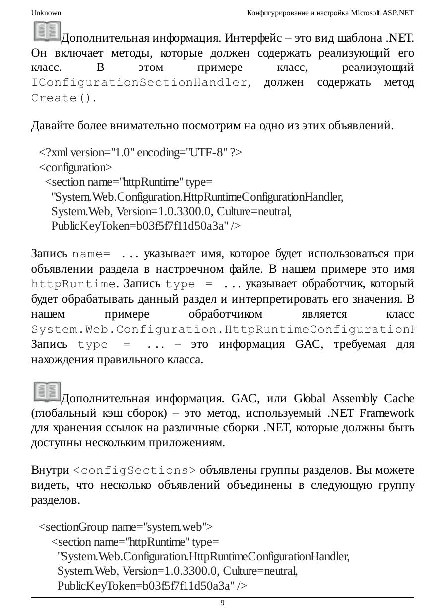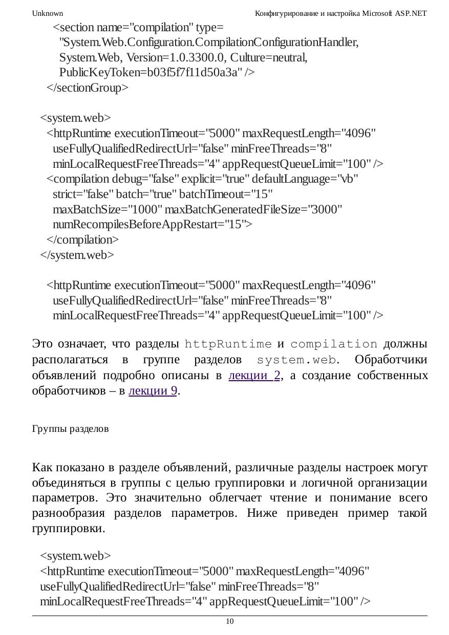 использование параметров Microsoft IIS для управления пулами приложений и реализации аутентификации Windows; создание и использование собственных разделов и обработчиков разделов.
