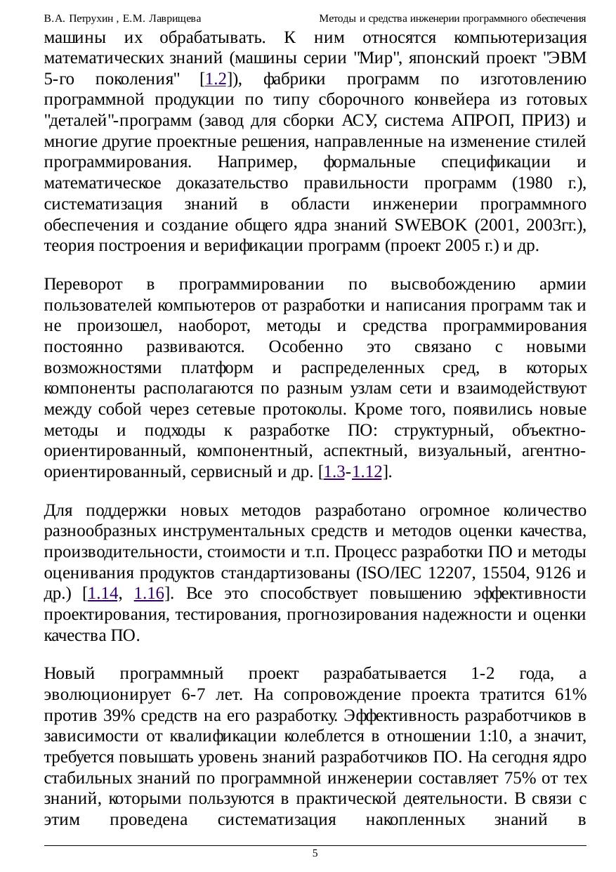 разработки ПО, но и стандартов, правил и методик управления разработкой ПО), а также вопросы проведения инженерных оценок качества, затраченных ресурсов, трудозатрат, стоимости и др.), основные процессы при создании программного обеспечения, среди которых такие ключевые разделы планирование (это анализ целей и задач, принципов реализации и управления планами и ресурсами), сопровождение (устранение найденных недостатков в ПО и внесение изменений как эволюционное развитие ПО ). Слушатели курса овладеют умением создавать системы с большими