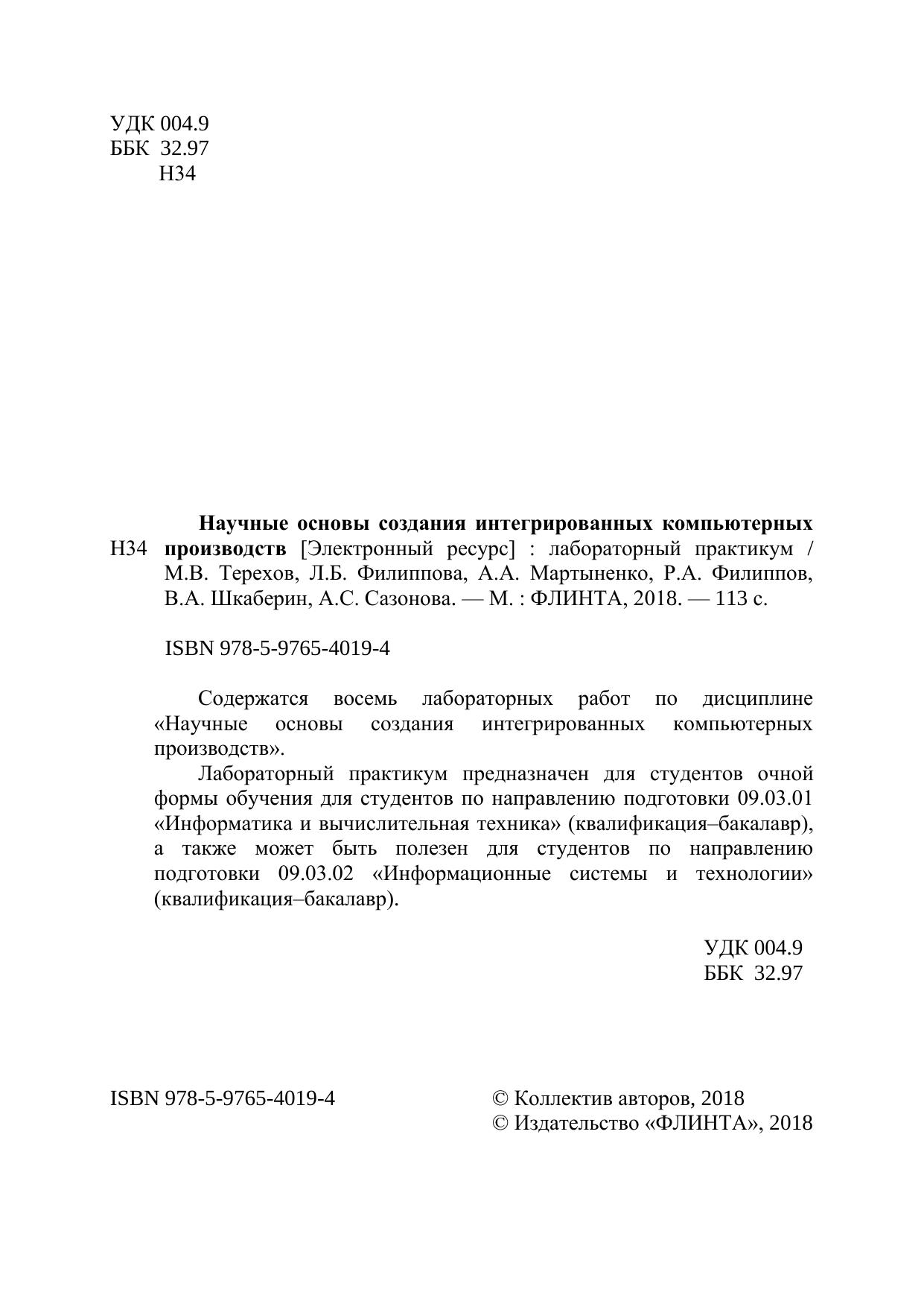 Содержатся восемь лабораторных работ по дисциплине «Научные основы создания интегрированных компьютерных производств». Лабораторный практикум предназначен для студентов очной формы обучения для студентов по направлению подготовки 09.03.01 «Информатика и вычислительная техника» (квалификация–бакалавр), а также может быть полезен для студентов по направлению подготовки 09.03.02 «Информационные системы и технологии» (квалификация–бакалавр).