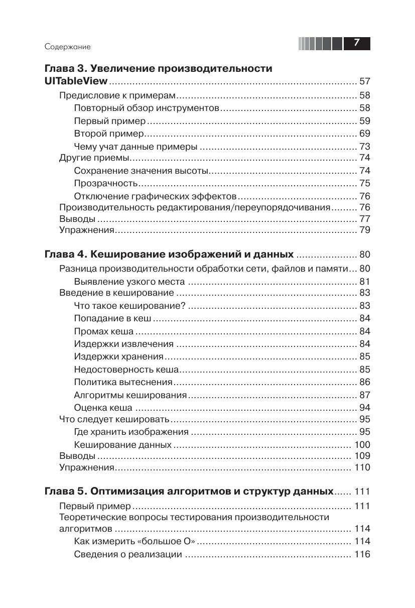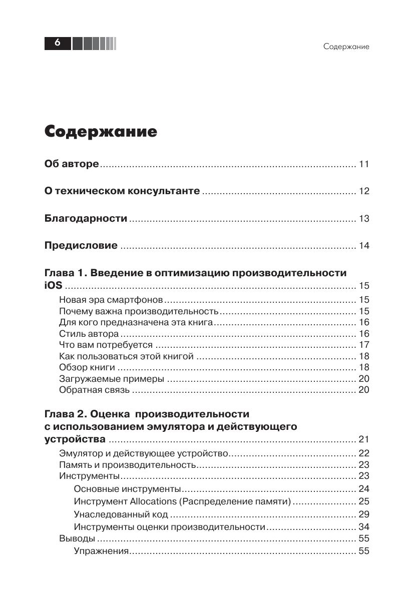 Книга демонстрирует, как совершенствовать, увеличивать и оптимизировать производительность приложений для операционной системы iOS. Вы быстро научитесь создавать быстрые и отзывчивые приложения, пригодные для распространения на коммерческой основе. Эта книга охватывает множество общих и вместе с тем сложных проблем, возникающих при оптимизации производительности приложений для iPhone и iPad, и подробно описывает, как эффективно их решать. Она содержит массу практических знаний, приемов, советов и рекомендаций, которые помогут вам преуспеть в конкурентном мире разработки приложений для iOS. Издание предназначено для программистов разной квалификации, разрабатывающих мобильные приложения под iOS.