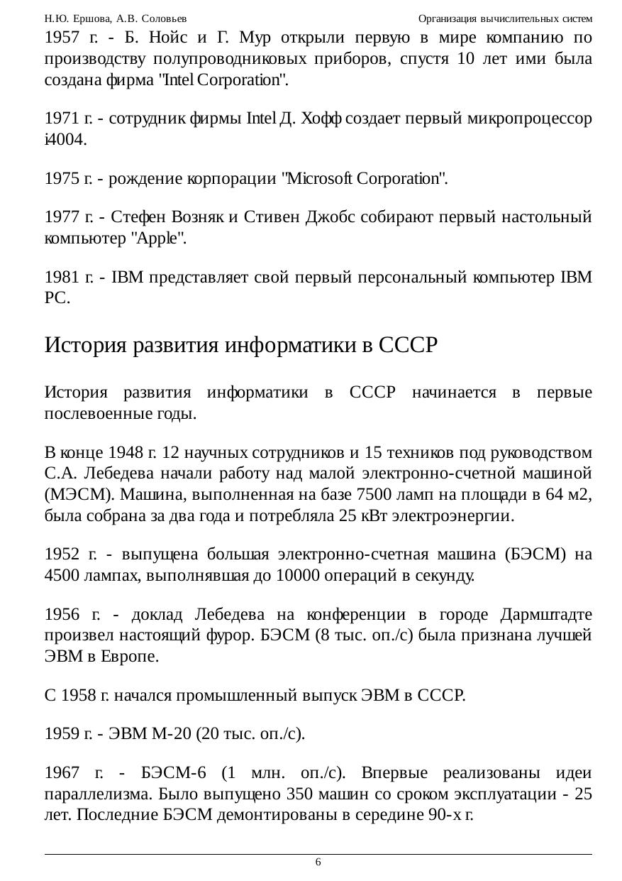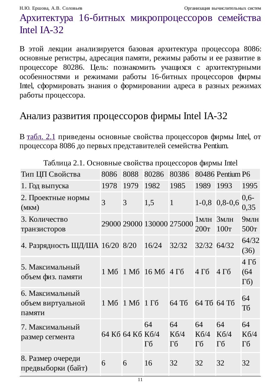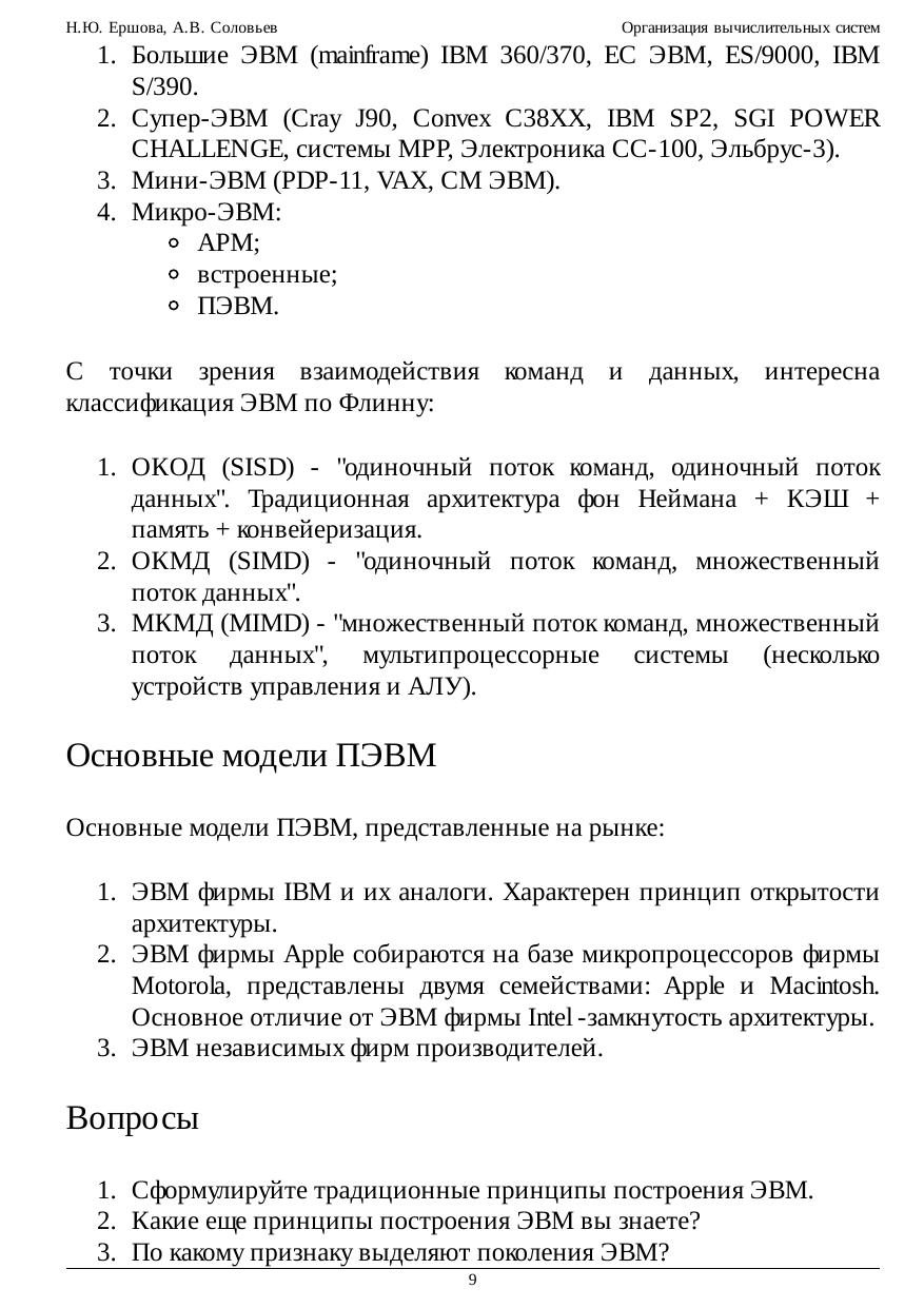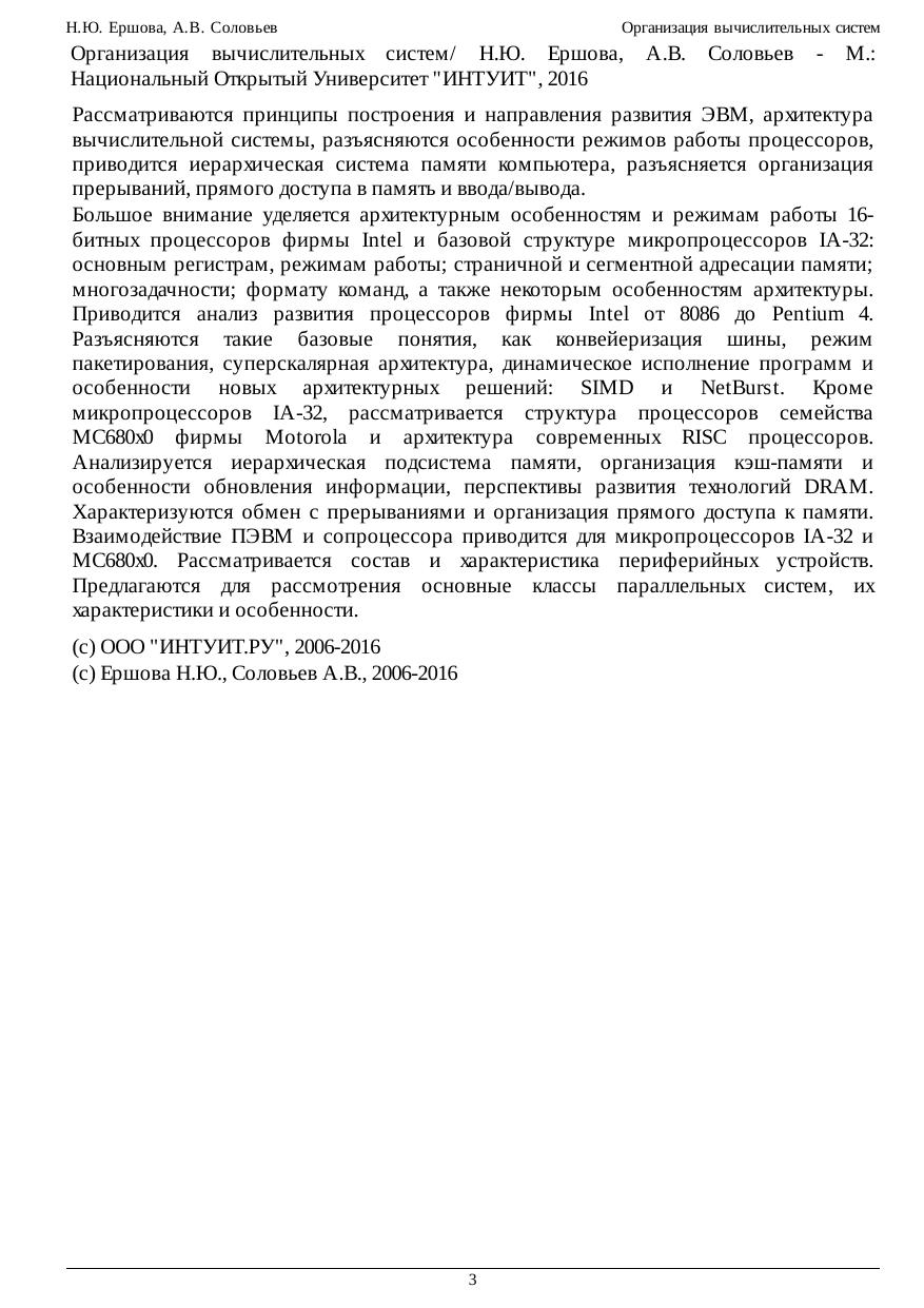 прерываний, прямого доступа в память и ввода/вывода. Большое внимание уделяется архитектурным особенностям и режимам работы 16-битных процессоров фирмы Intel и базовой структуре микропроцессоров IA-32: основным регистрам, режимам работы; страничной и сегментной адресации памяти; многозадачности; формату команд, а также некоторым особенностям архитектуры. Приводится анализ развития процессоров фирмы Intel от 8086 до Pentium 4. Разъясняются такие базовые понятия, как конвейеризация шины, режим пакетирования, суперскалярная архитектура, динамическое исполнение программ и особенности новых архитектурных решений: SIMD и NetBurst. Кроме микропроцессоров IA-32, рассматривается структура процессоров семейства МС680х0 фирмы Motorola и архитектура современных RISC процессоров. Анализируется иерархическая подсистема памяти, организация кэш-памяти и особенности обновления информации, перспективы развития технологий DRAM. Характеризуются обмен с прерываниями и организация прямого доступа к памяти. Взаимодействие ПЭВМ и сопроцессора приводится для микропроцессоров IA-32 и МС680х0. Рассматривается состав и характеристика периферийных устройств. Предлагаются для рассмотрения основные классы параллельных систем, их характеристики и особенности.