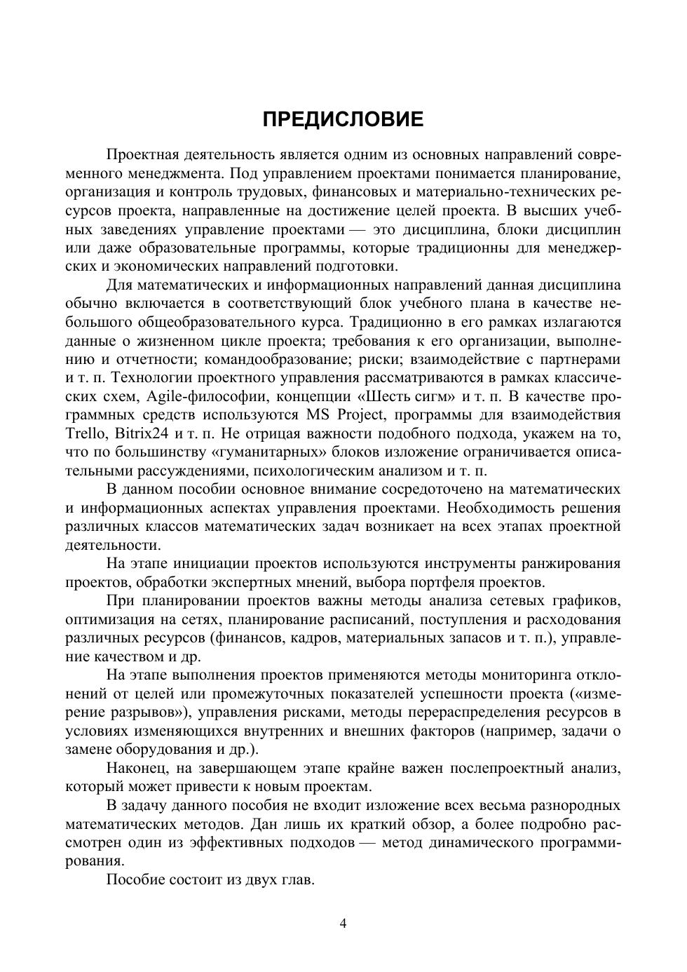 Рассматриваются элементы проектной деятельности и задачи управления проектами с точки зрения использования математических и компьютерных методов. Дан общий обзор основных понятий управления проектами, обсуждена специфика различных типов проектов. Достаточно подробно изложены основы пакета GanttProject. На примерах задач управления ресурсами проиллюстрированы основные математические методы, применяемые при управлении проектами. Пособие предназначено для обучающихся по направлению подготовки «Прикладная математика и информатика». Может быть полезно для студентов смежных направлений, а также аспирантов и преподавателей.