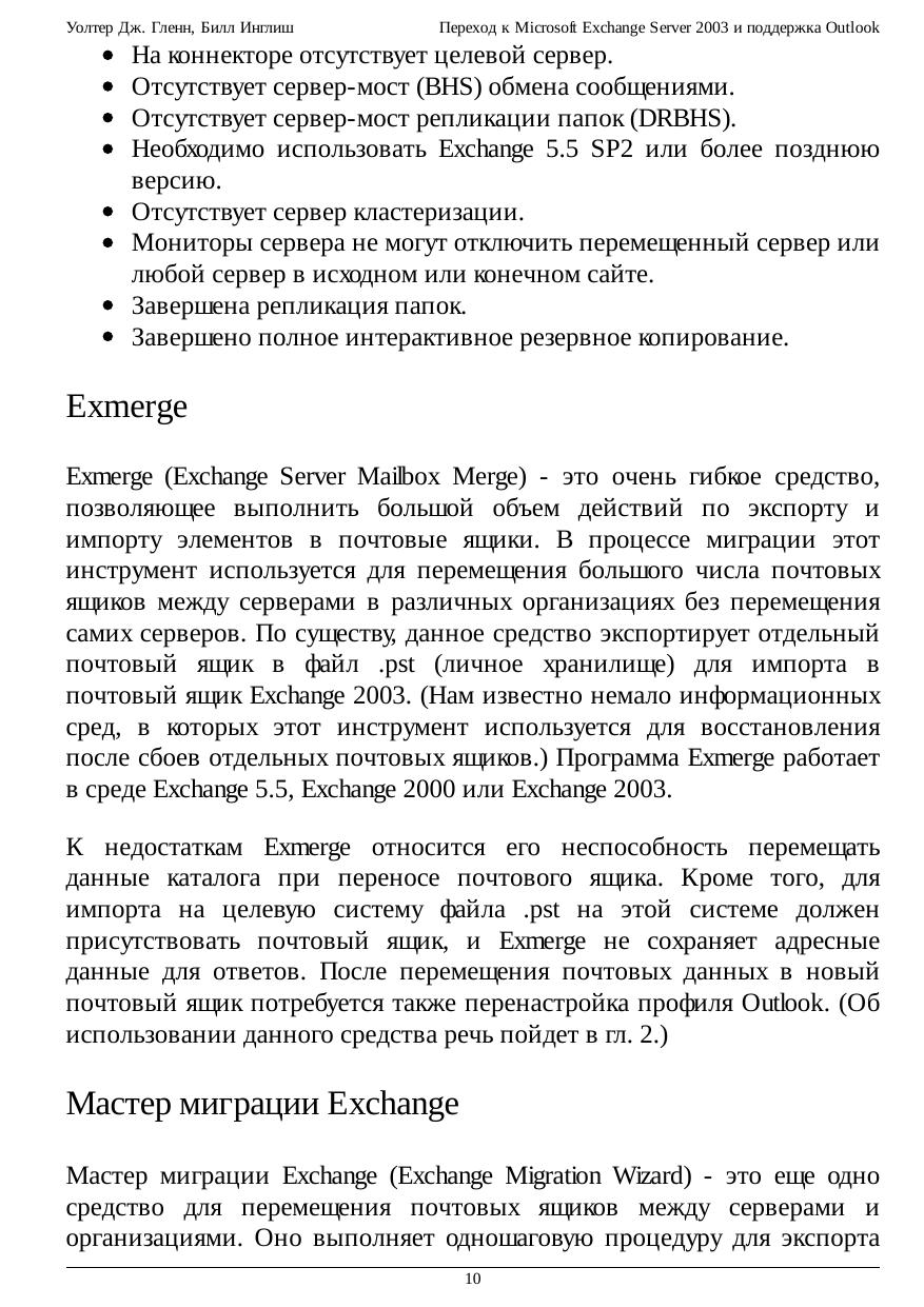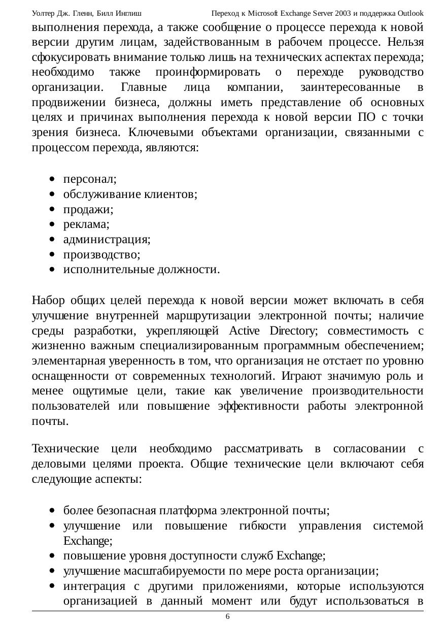 Переход к Microsoft Exchange Server 2003 и поддержка Outlook