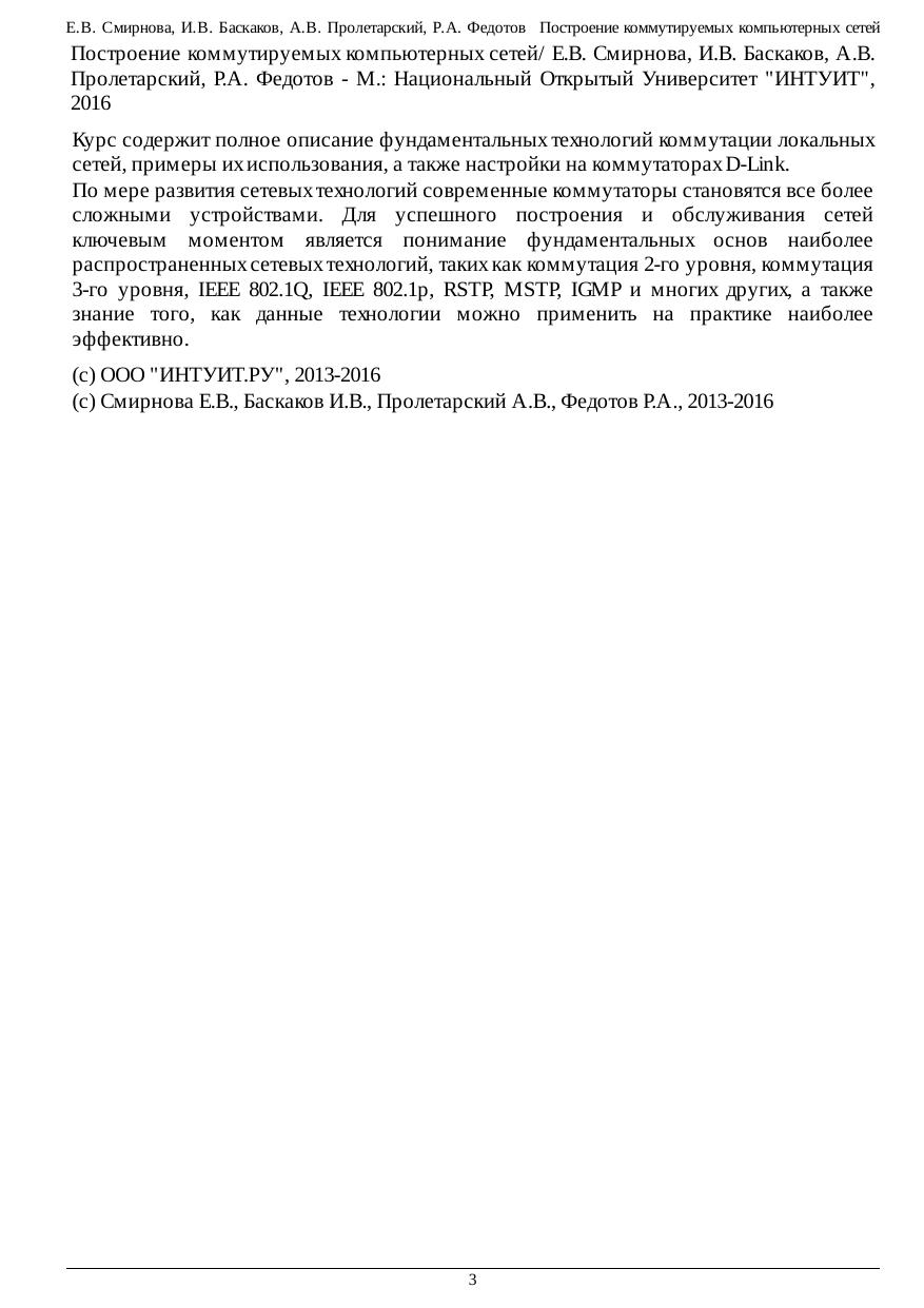 Курс содержит полное описание фундаментальных технологий коммутации локальных сетей, примеры их использования, а также настройки на коммутаторах D-Link. По мере развития сетевых технологий современные коммутаторы становятся все более сложными устройствами. Для успешного построения и обслуживания сетей ключевым моментом является понимание фундаментальных основ наиболее распространенных сетевых технологий, таких как коммутация 2-го уровня, коммутация 3-го уровня, IEEE 802.1Q, IEEE 802.1p, RSTP, MSTP, IGMP и многих других, а также знание того, как данные технологии можно применить на практике наиболее эффективно.
