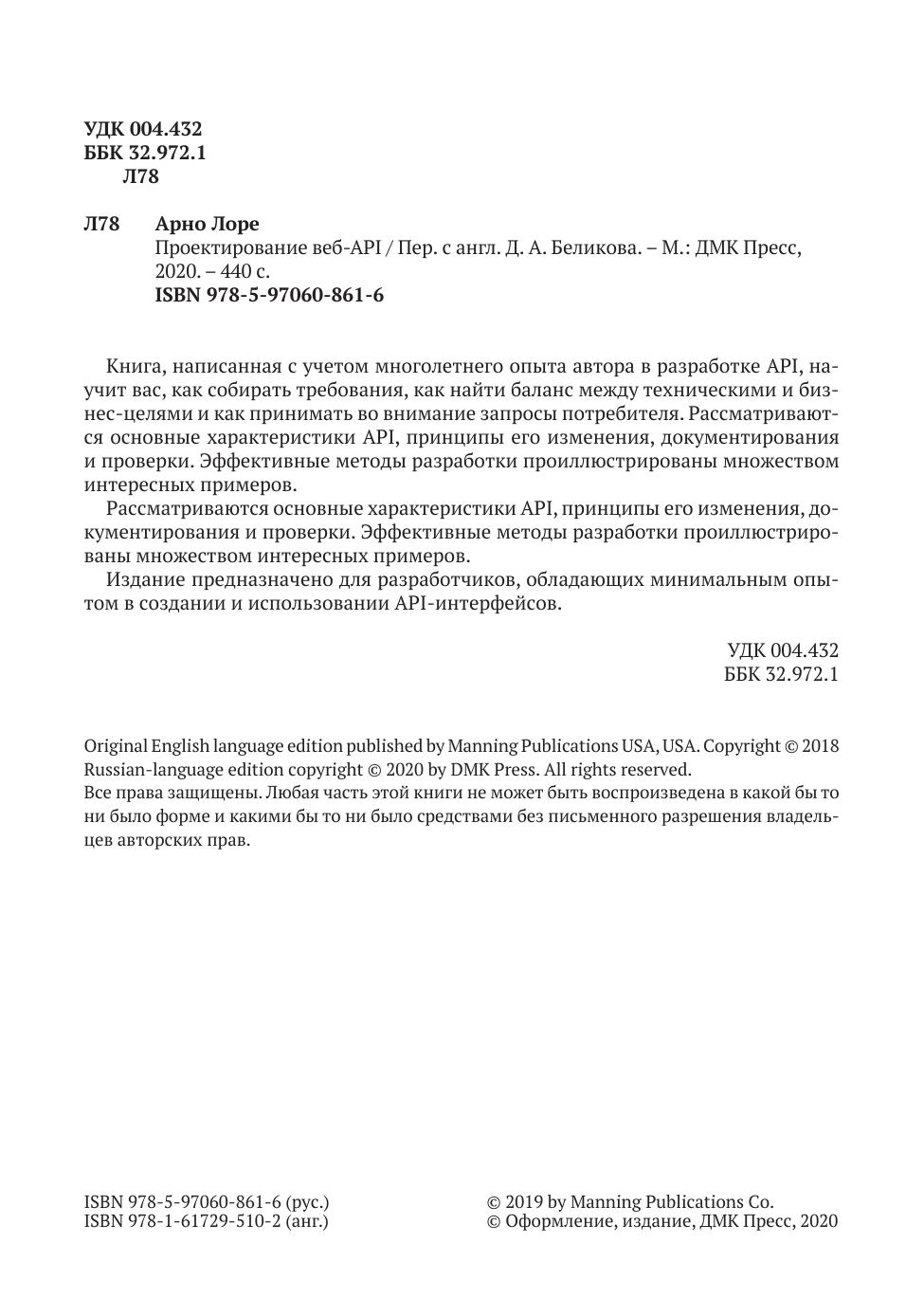 Издание предназначено для разработчиков, обладающих минимальным опытом в создании и использовании API-интерфейсов.