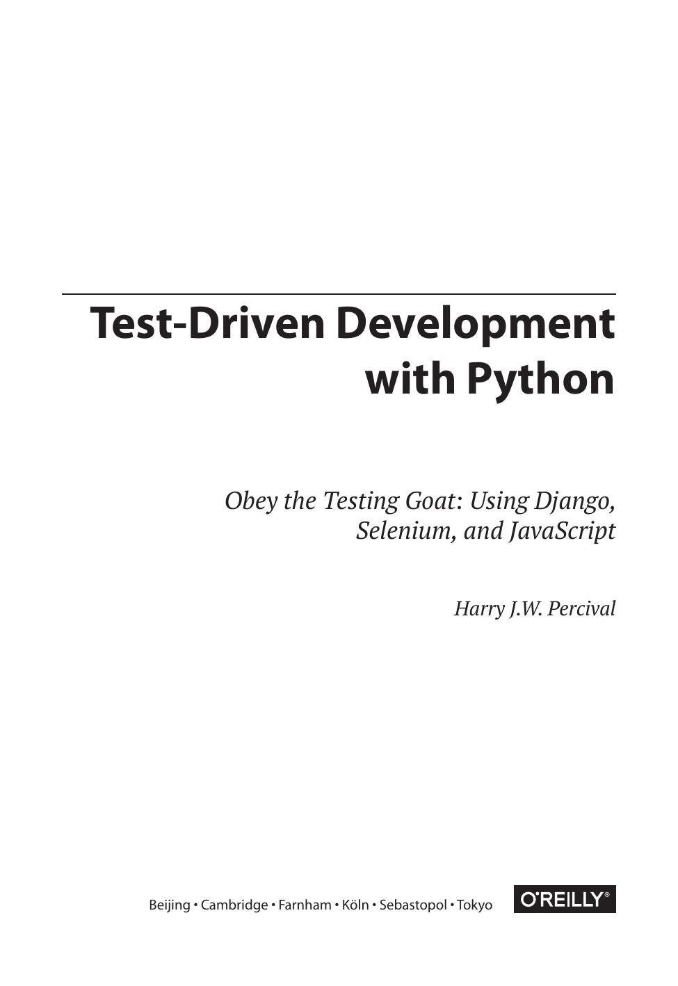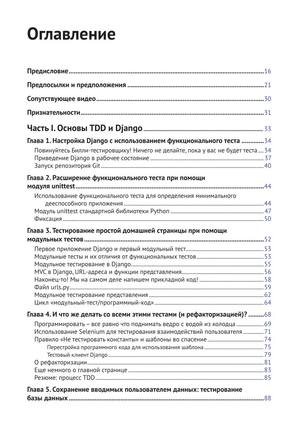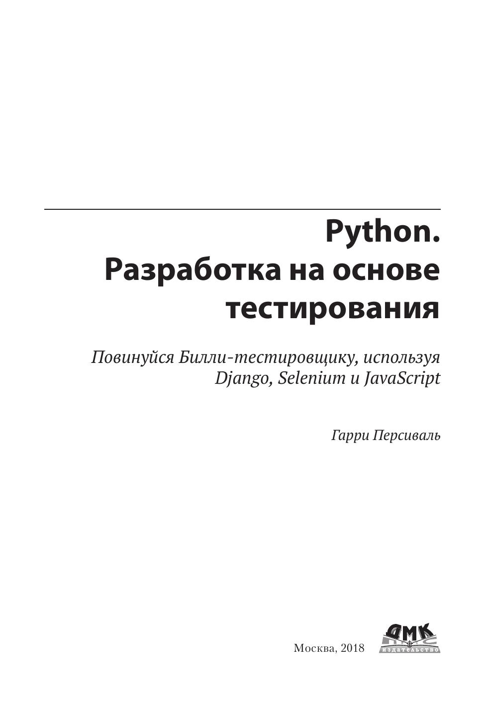 Книга демонстрирует преимущества методологии разработки на основе тестирования (TDD) на языке Python. Вы научитесь писать и выполнять тесты для создания любого фрагмента вашего приложения и затем разрабатывать минимальный объем программного кода, необходимого для прохождения этих тестов. Вы также научитесь работать с различными инструментами и фрейм-ворками, такими как Django, Selenium, Git, jQuery и Mock. Издание предназначено всем разработчикам, кто уже освоил начальный уровень программирования на Python и хочет перейти на следующий.
