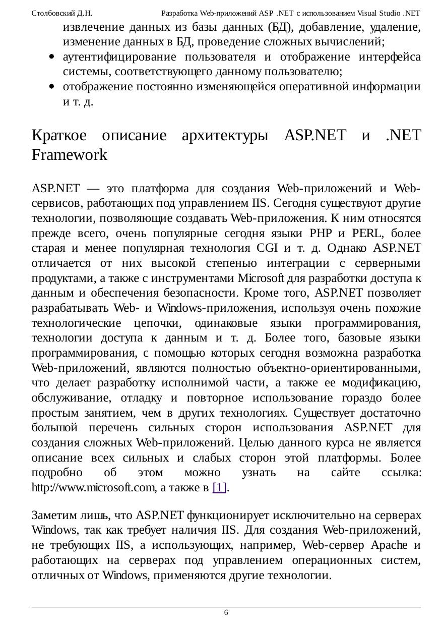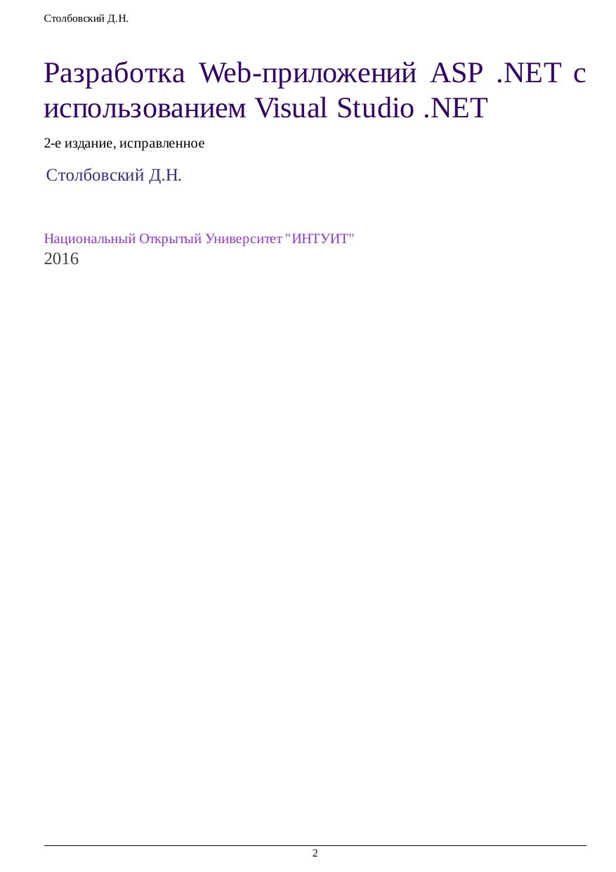 Разработка Web-приложений ASP .NET с использованием Visual Studio .NET